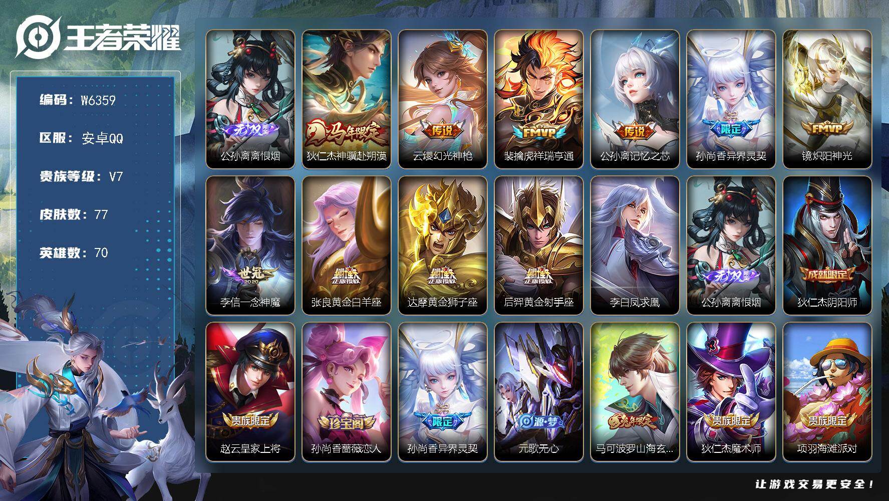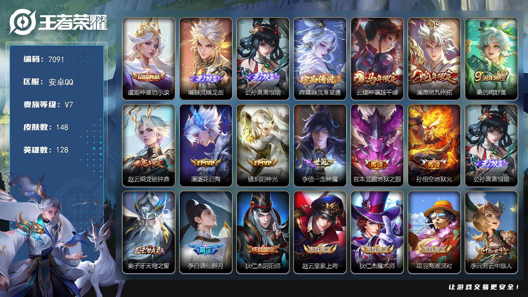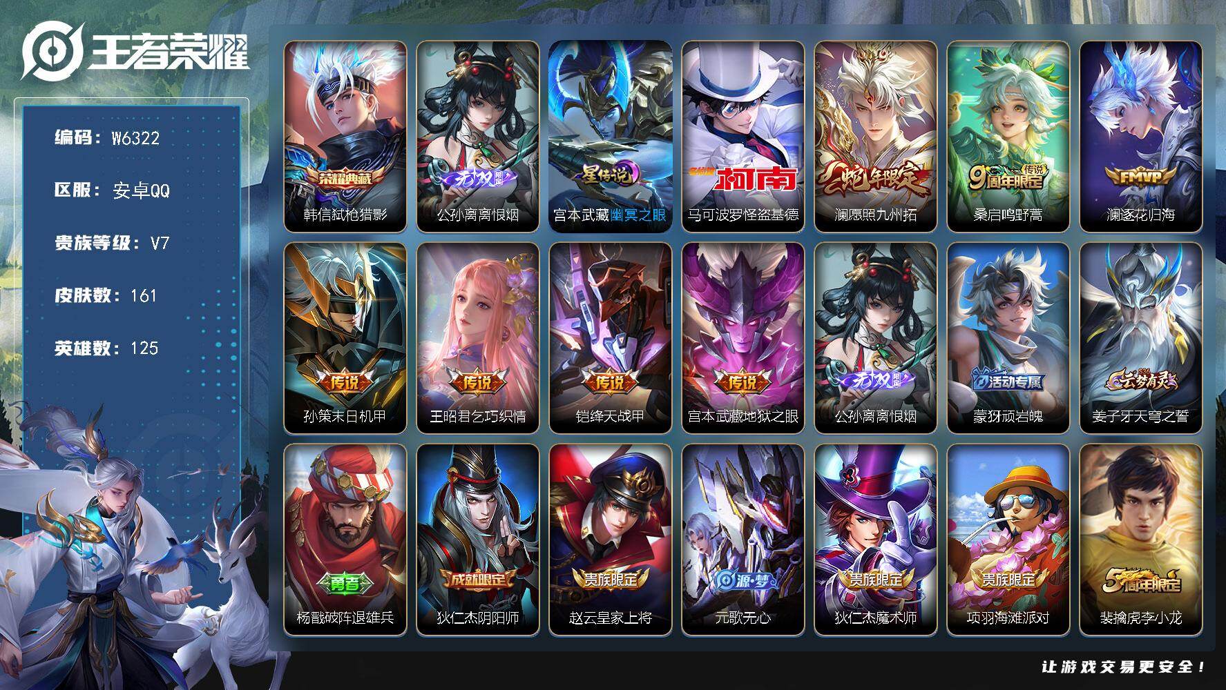 【W6322】安卓Q区-可二次-贵7-125英雄-161皮肤-1典藏-1无双-