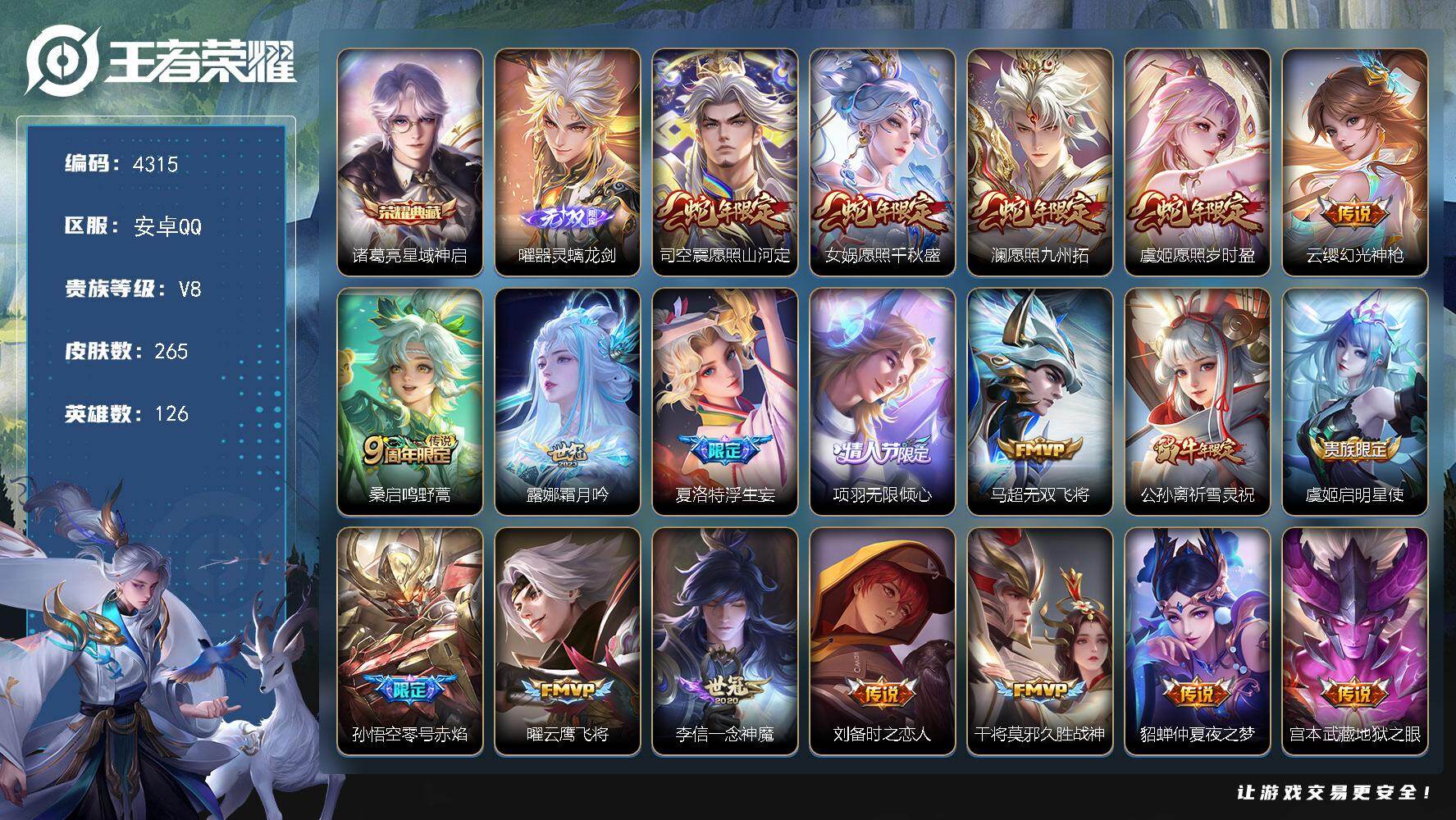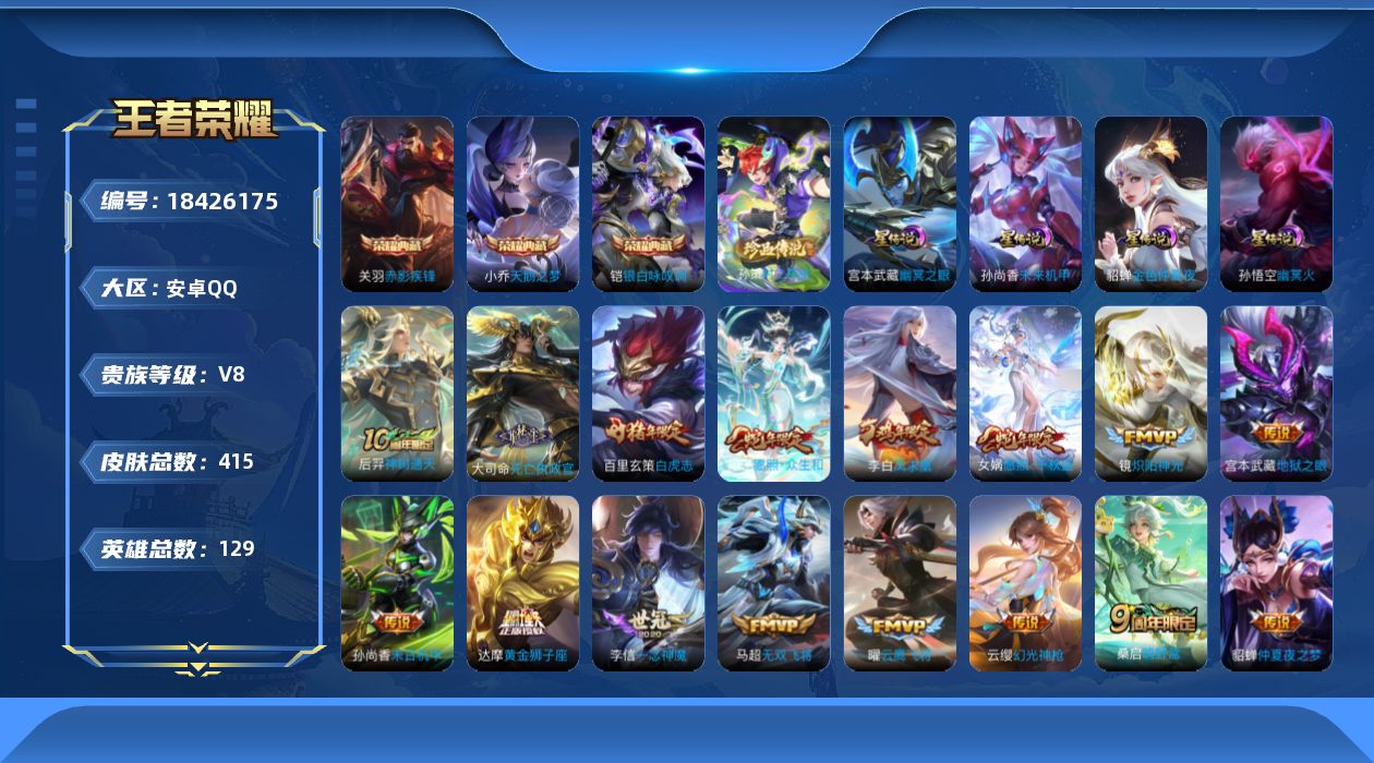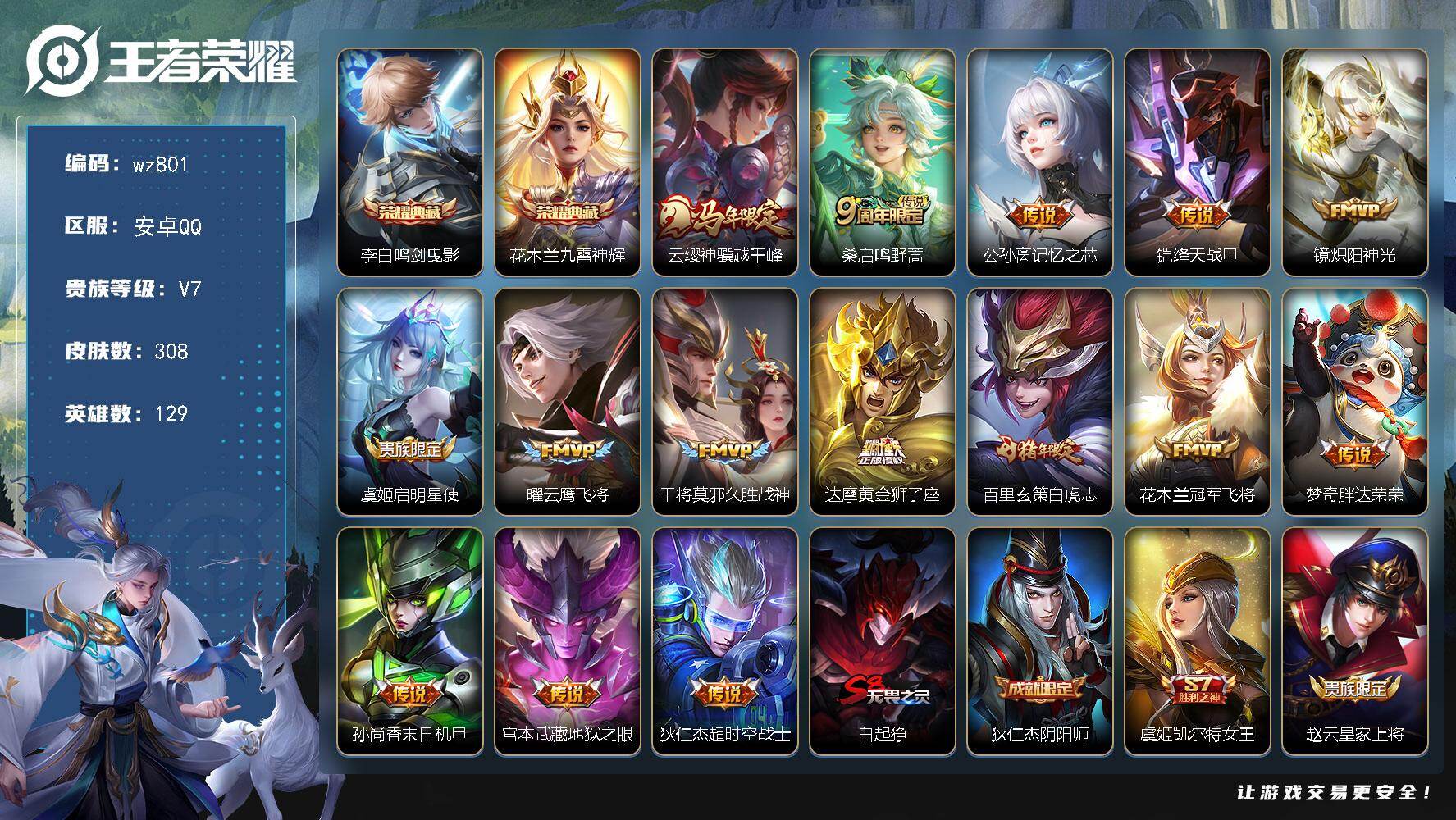 安卓Q-V7-最强王者段位-129英雄-308皮肤-2典藏皮肤-15传说-86