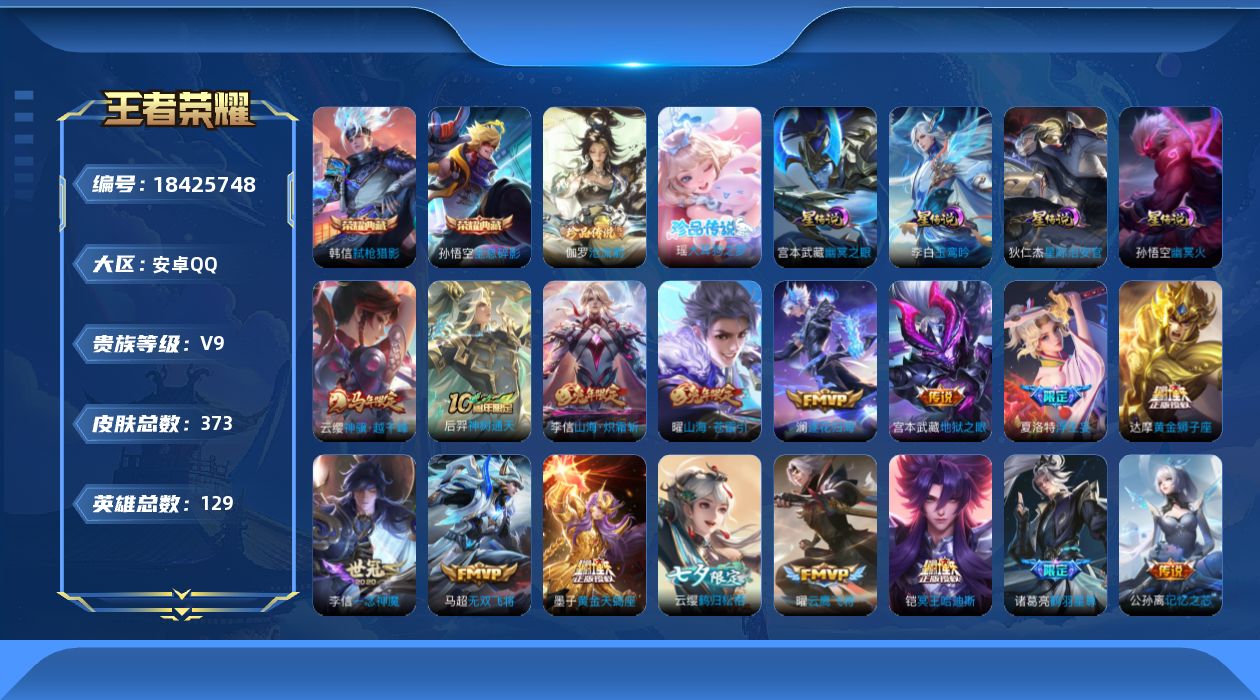 安卓Q-V0-永恒钻石II段位-129英雄-300皮肤-2典