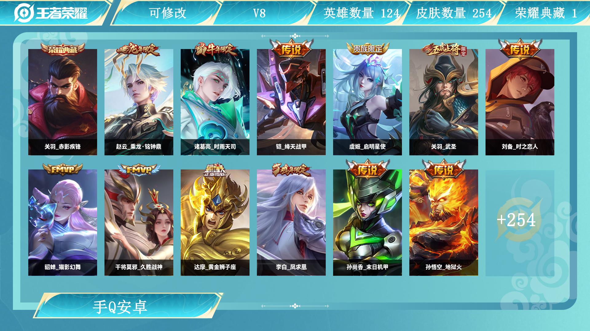 关羽典藏+武圣+冰封!皮肤数量253印记总数20V8最强王者