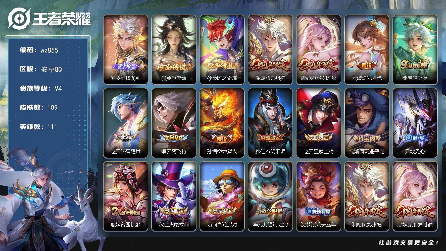 安卓Q-V4-永恒钻石IV段位-111英雄-109皮肤-1无双-2珍品传说-7