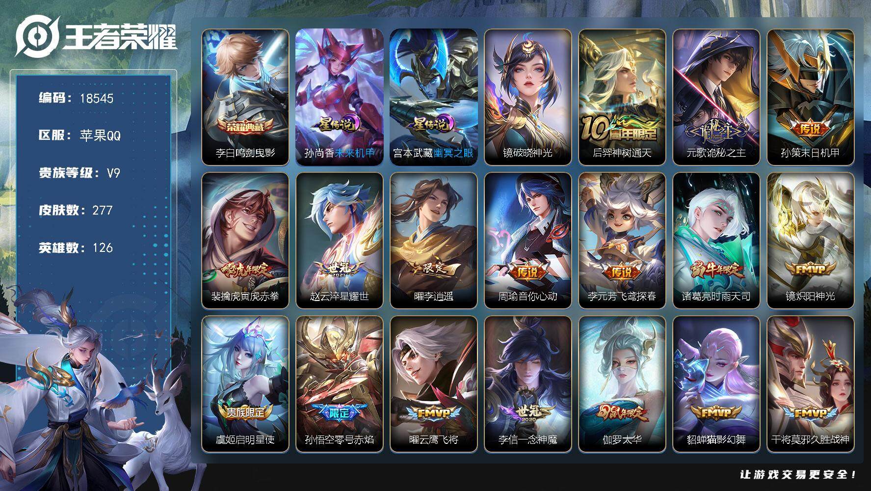 安卓QQ-1典藏-12传说-271皮肤-128英雄-荣耀王者女号高质量QQ飞车连体号QQ飞车贵族六