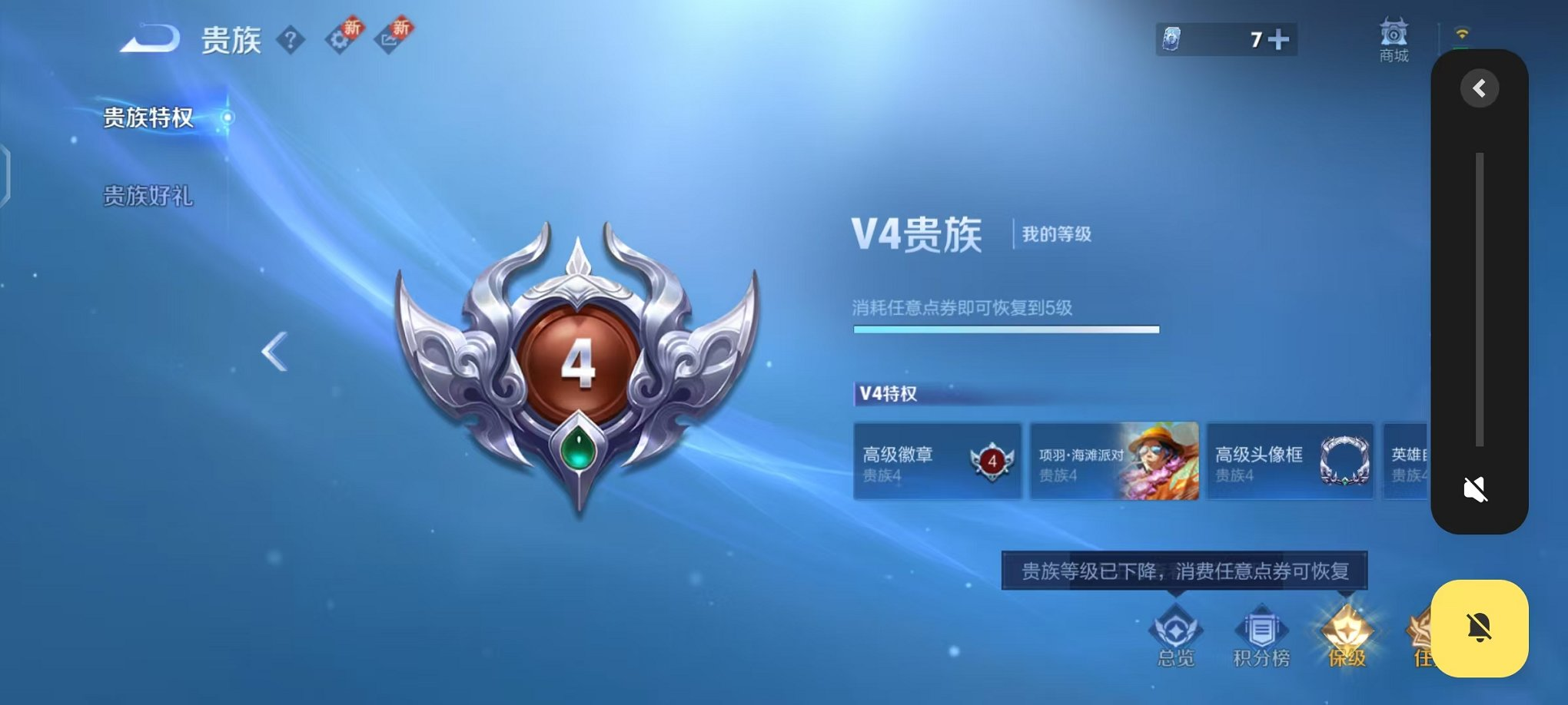 贵族等级: V5 英雄数: 125 皮肤数: 144 荣耀水晶: 鸣剑·曳影