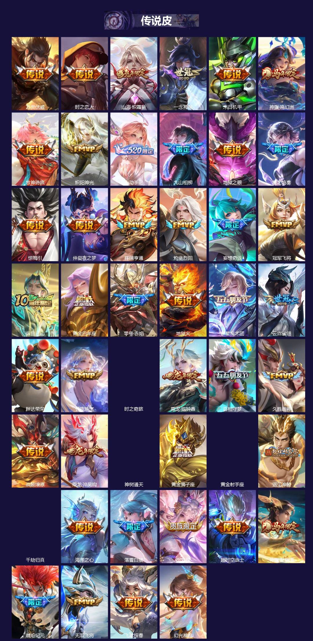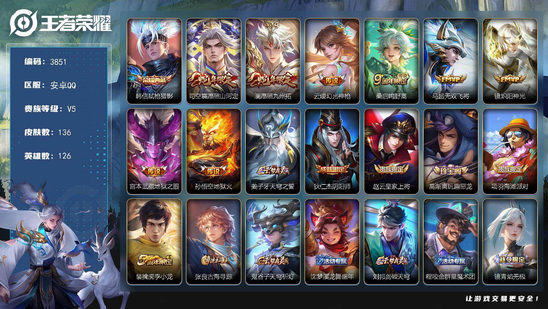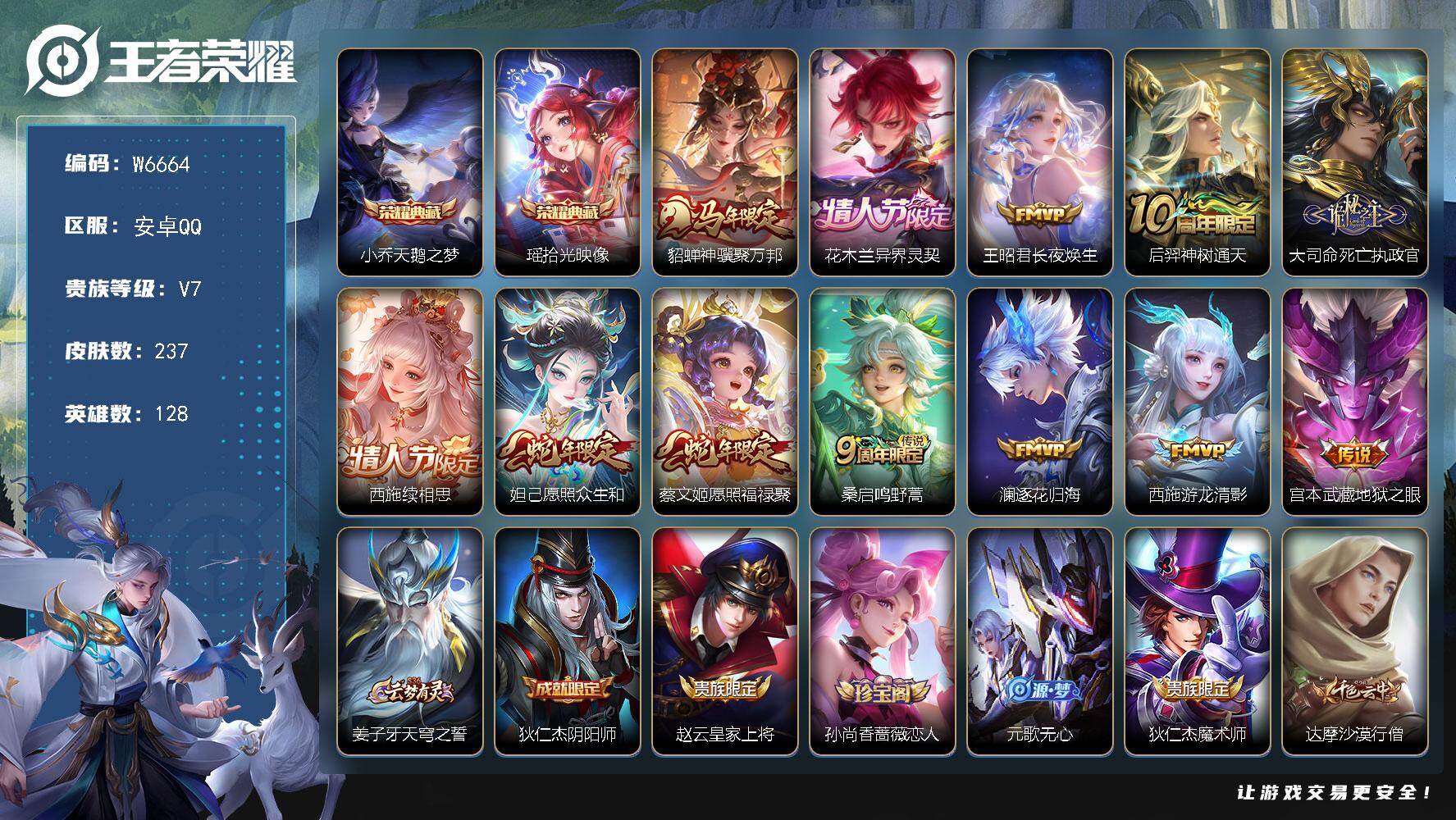 V7 1典藏 5传说 128英雄 267皮肤 可修改实名 男号 【英雄全皮】大