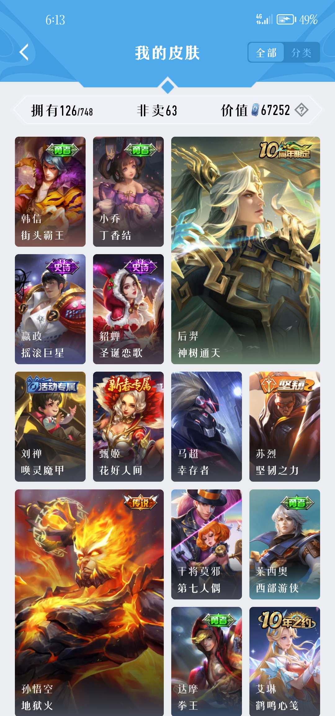 皮肤126 英雄125 荣耀王者 传说3 其他皮肤42-自己的小号不玩了也没有怎么充钱