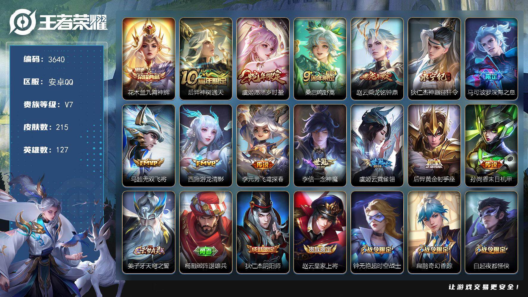 安卓Q-V6-至尊星耀III段位-127英雄-215皮肤-1典藏皮肤-13传说