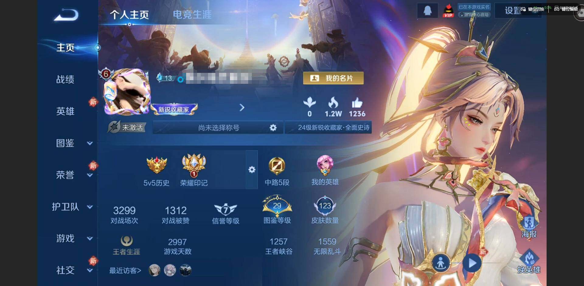 实名: 可修改 贵族等级: V6 英雄数: 124 皮肤数: 123 星传说: