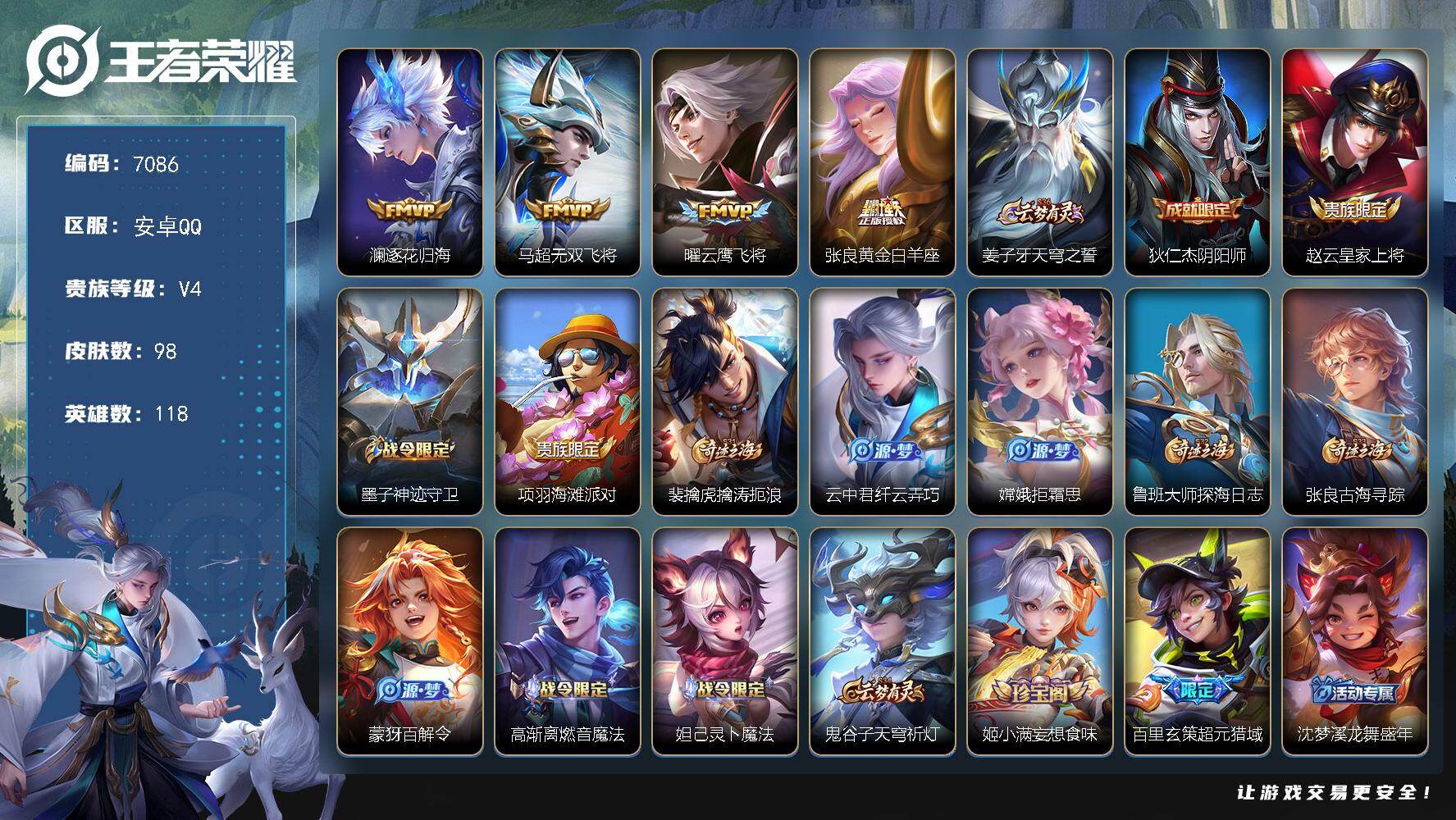 MWZ106232有二次【v5 127英雄133皮肤8传说 1星元 】安卓Q-