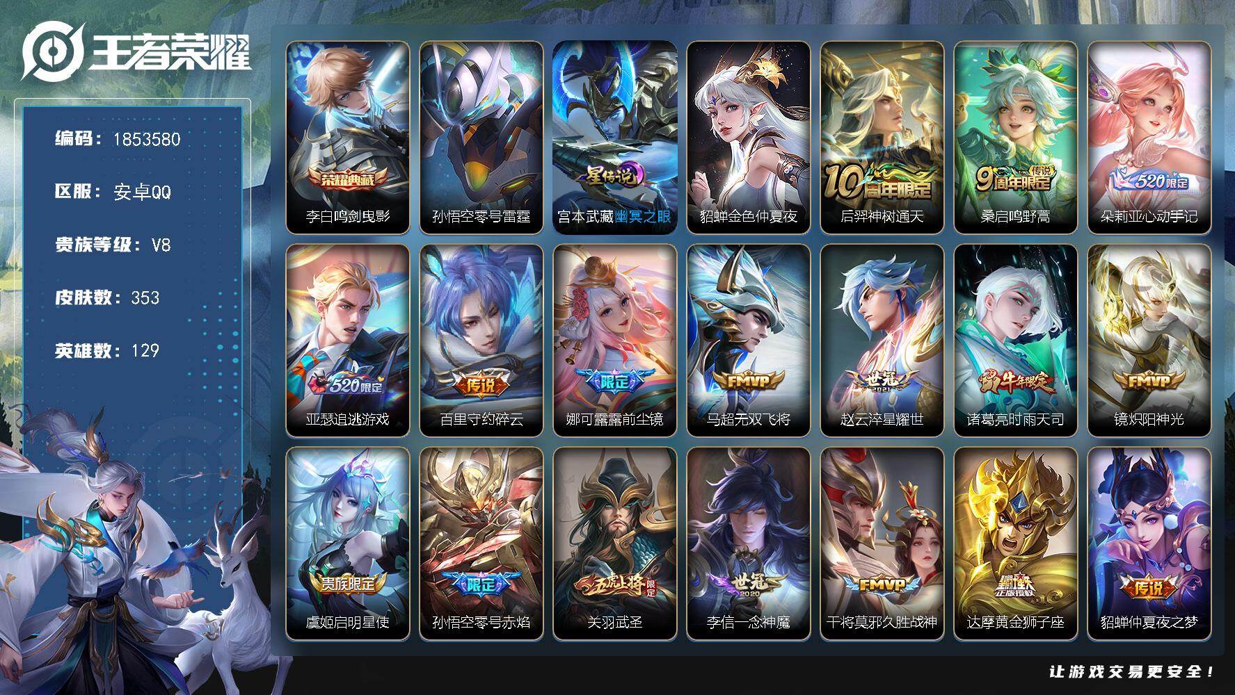 V8-永恒钻石II段位-129英雄-353皮肤-1典藏皮肤-18传说-116史诗