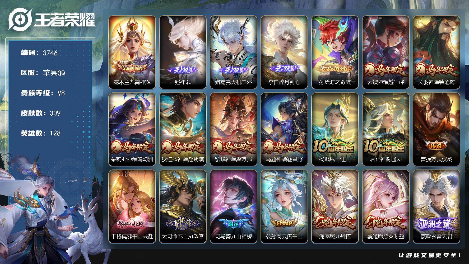 V8-最强王者段位-128英雄-309皮肤-1典藏皮肤