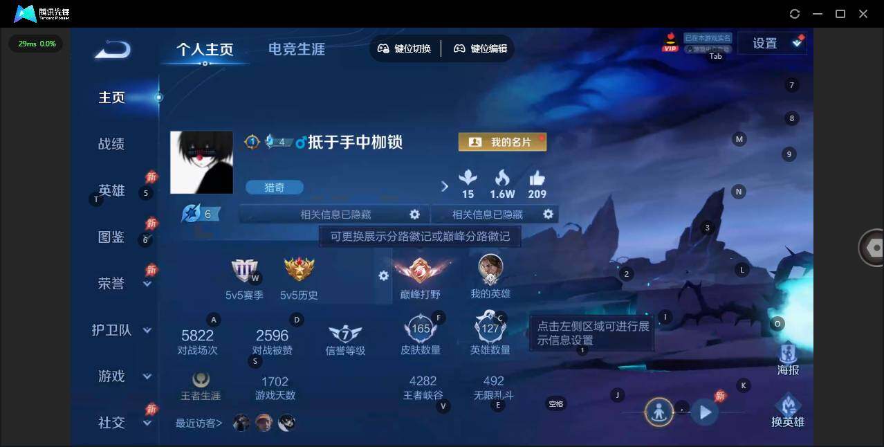 贵族等级: V6 英雄数: 127 皮肤数: 173 星传说: 幽冥之眼 传说