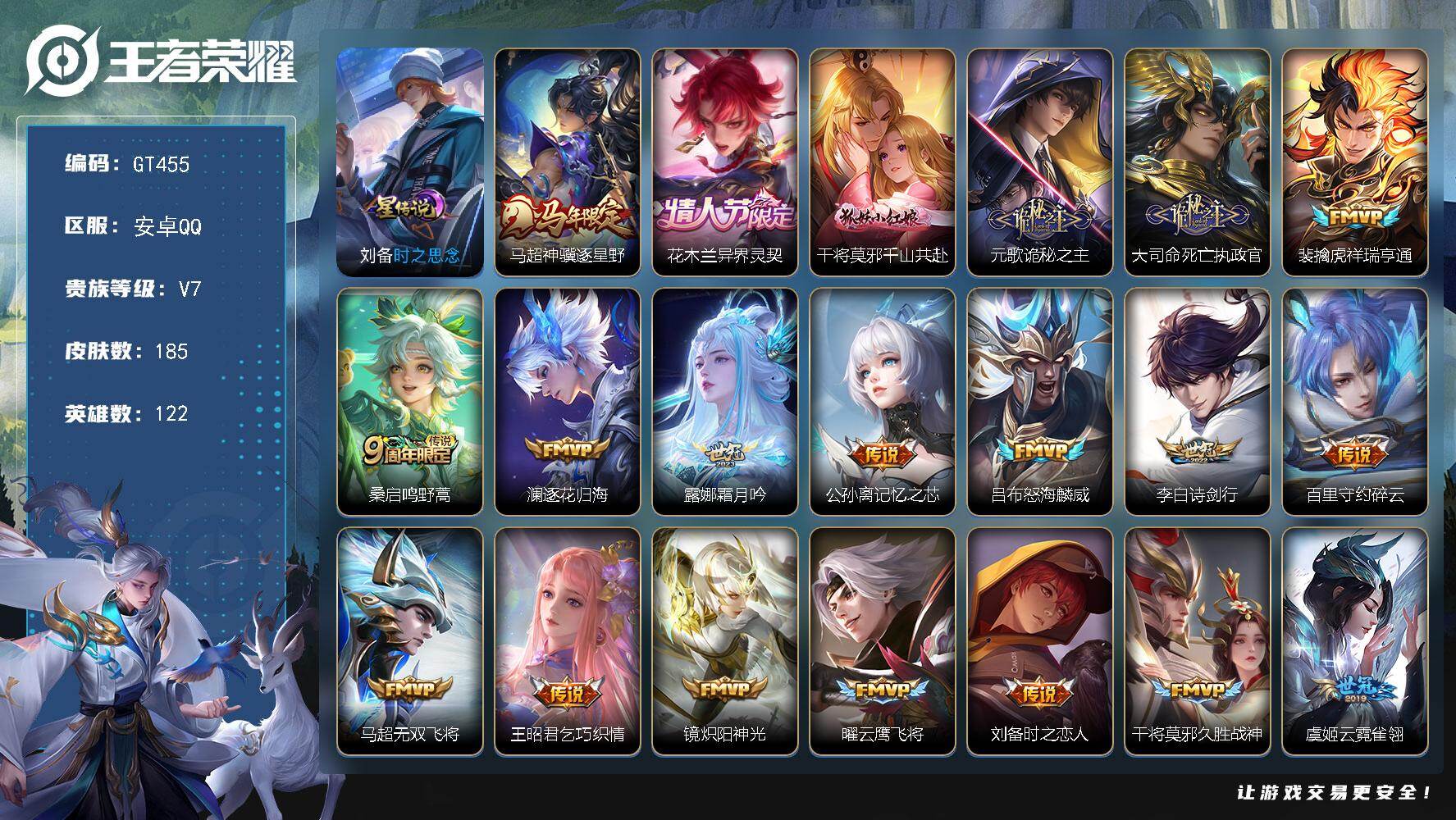 荣耀王者/464皮肤/128英雄/3典藏/1珍品无双/9无双/6珍品传说/66传说/138史诗/9稀有英雄