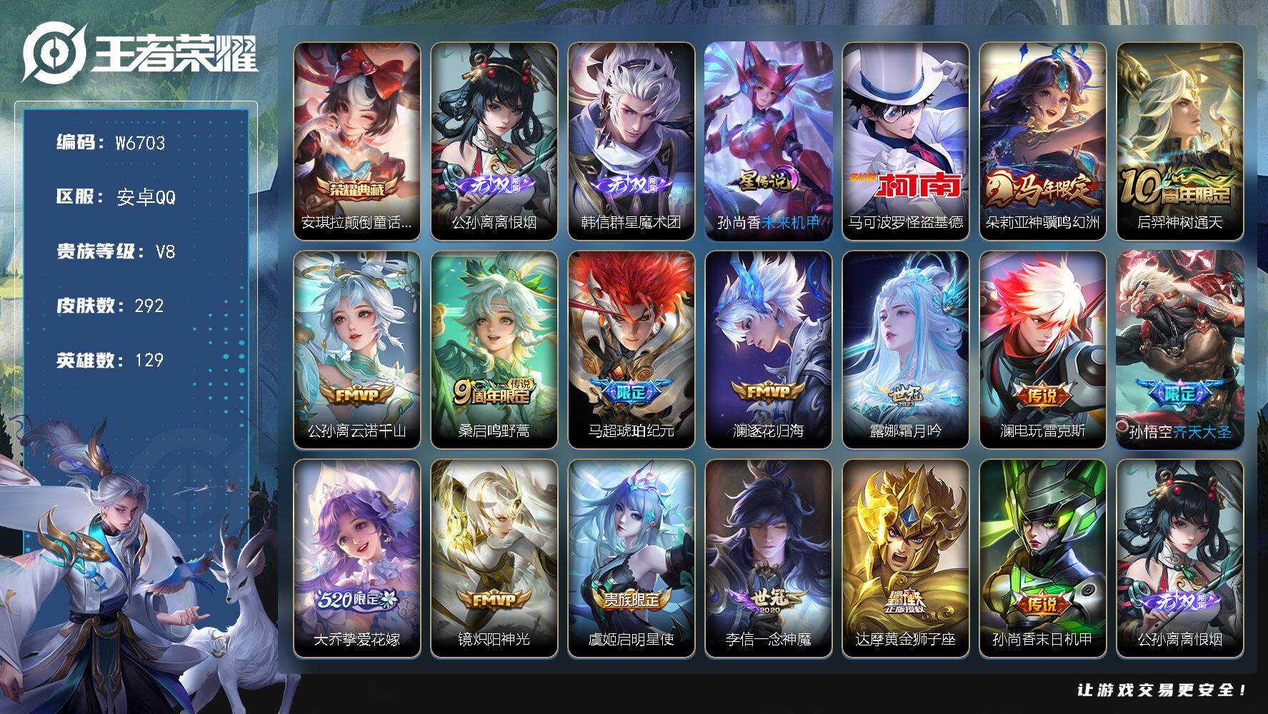 【AZW329】安卓Q-V7-至尊星耀IV段位-128英雄-275皮肤-1典藏