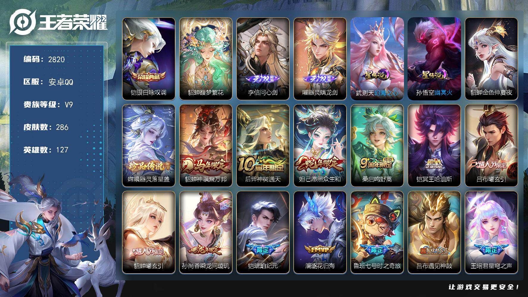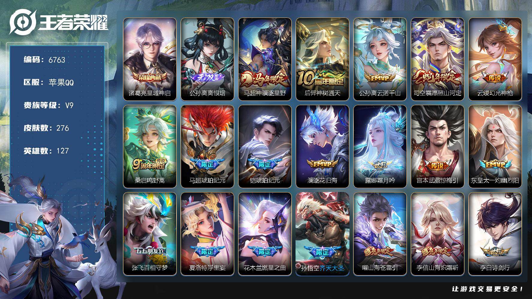 V9-最强王者段位-127英雄-286皮肤-1典藏皮肤-1珍品无双-2无双-1珍品传说-27传说-66史诗