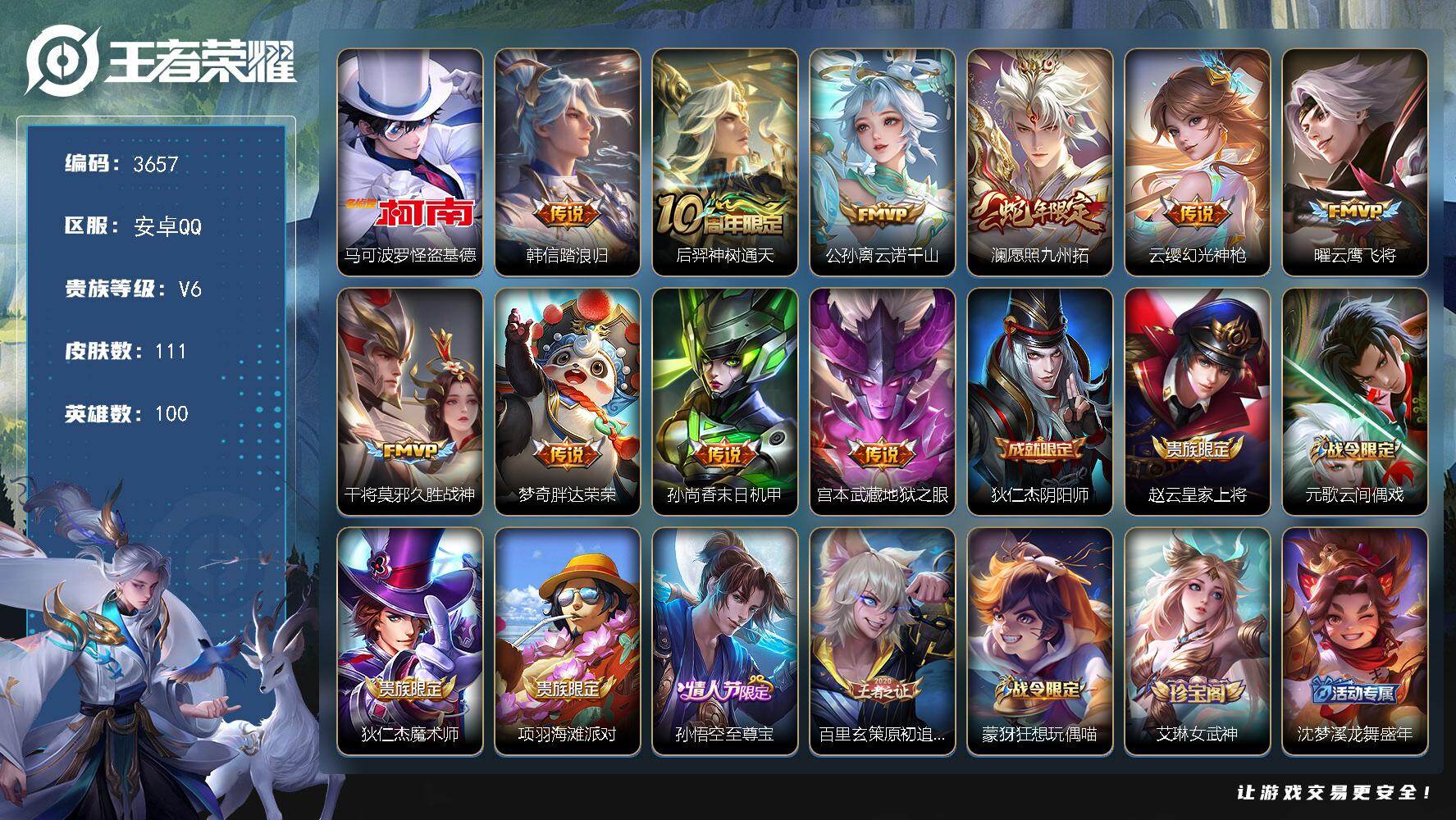 V6-最强王者段位-100英雄-111皮肤-1珍品传说-10传说-35史诗