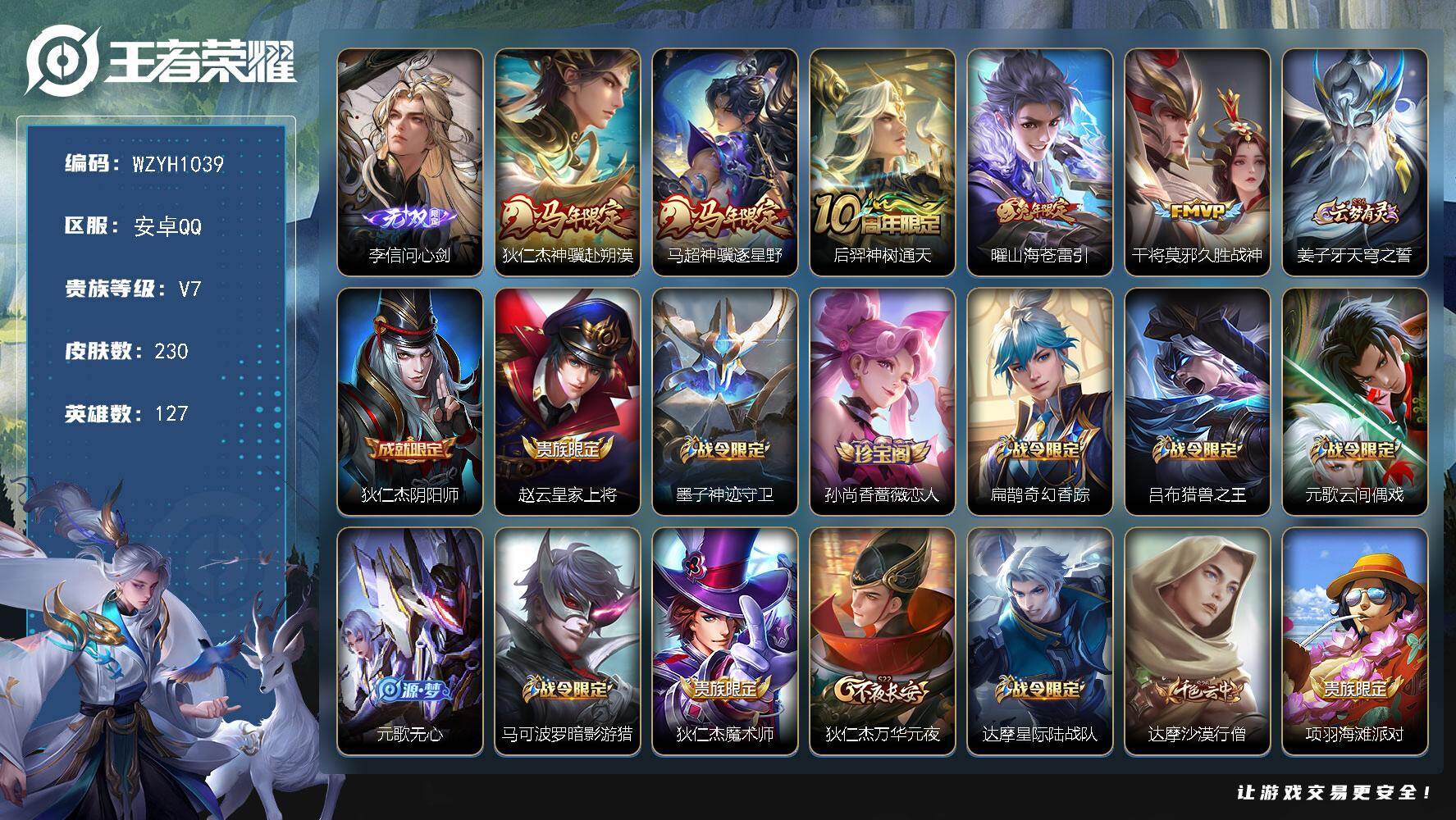 贵族7/皮肤230/传说5/史诗51/英雄127/孙权全皮/猪八戒全皮/敖隐全皮/蒙恬全皮/