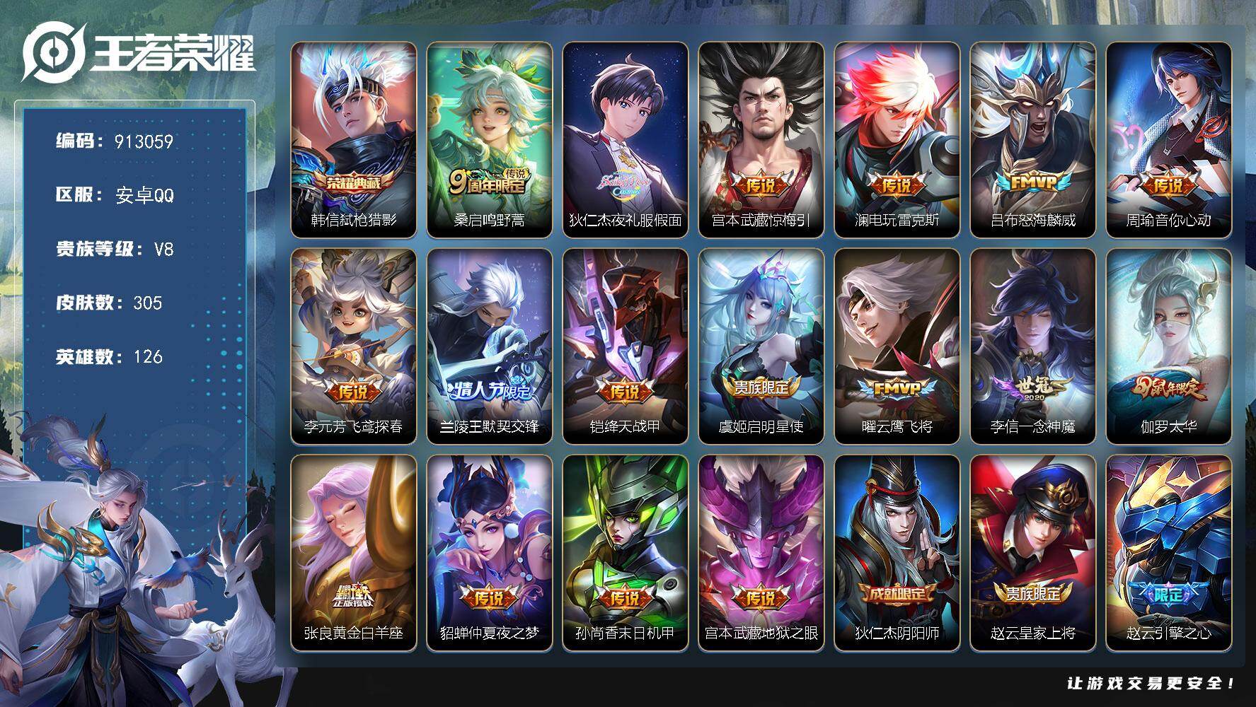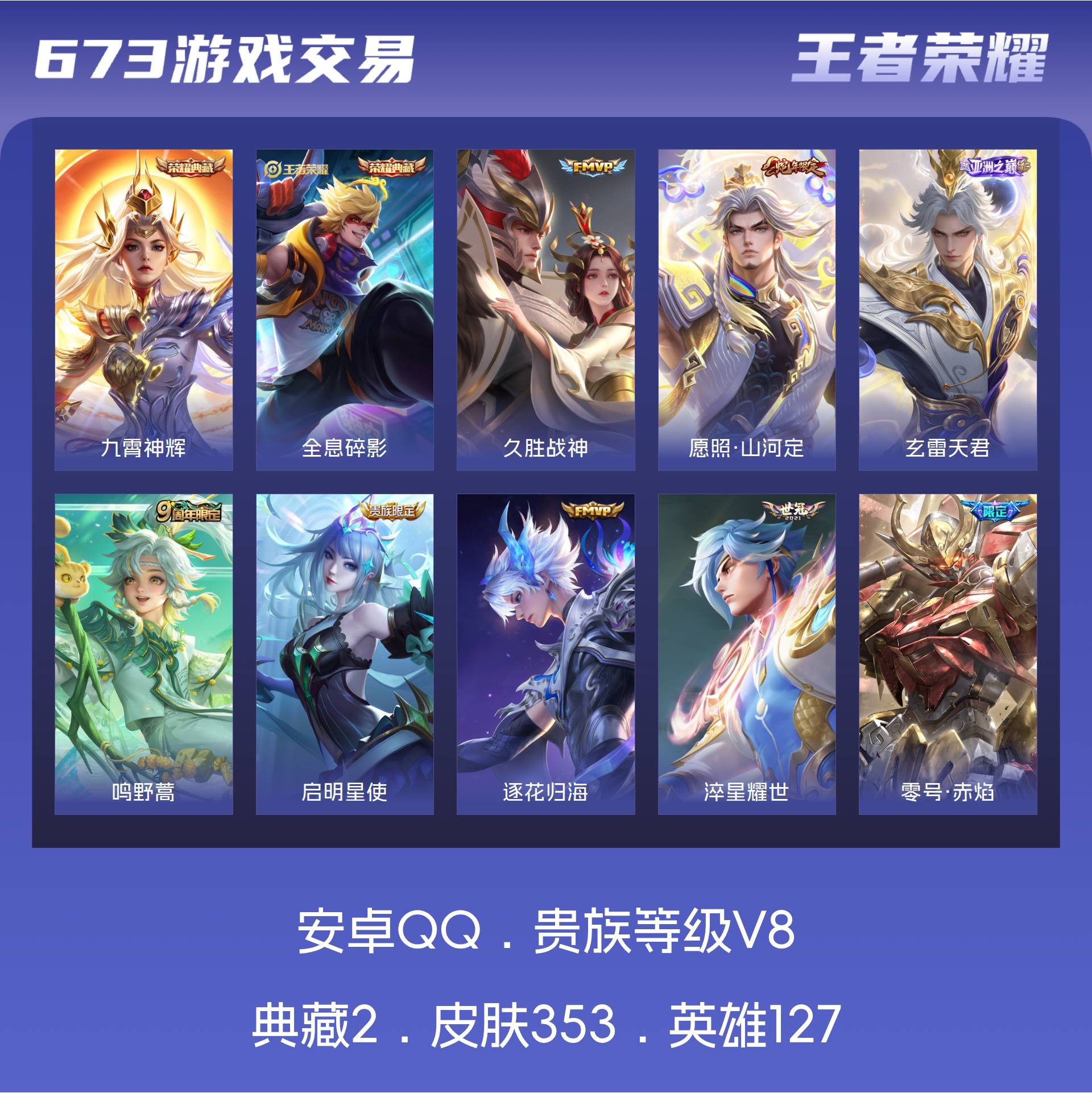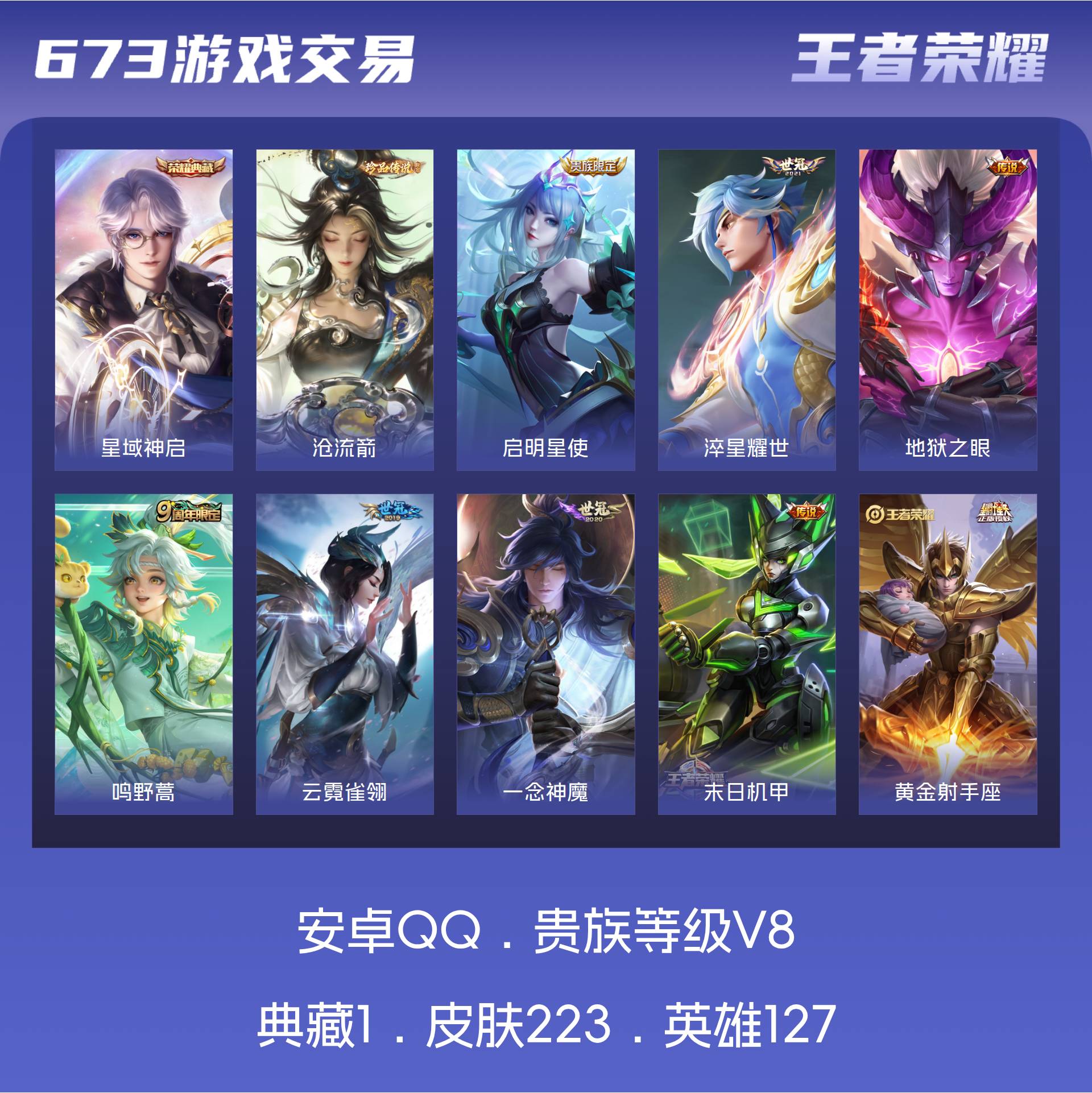 V8-荣耀黄金I段位-127英雄-251皮肤-1典藏皮肤-3传说-58史诗 【英雄全皮】:孙权全皮 【荣耀典藏】:孙悟空全息碎影 【传说皮肤】:桑启鸣野蒿,孙尚香异界灵契,虞姬启明星使