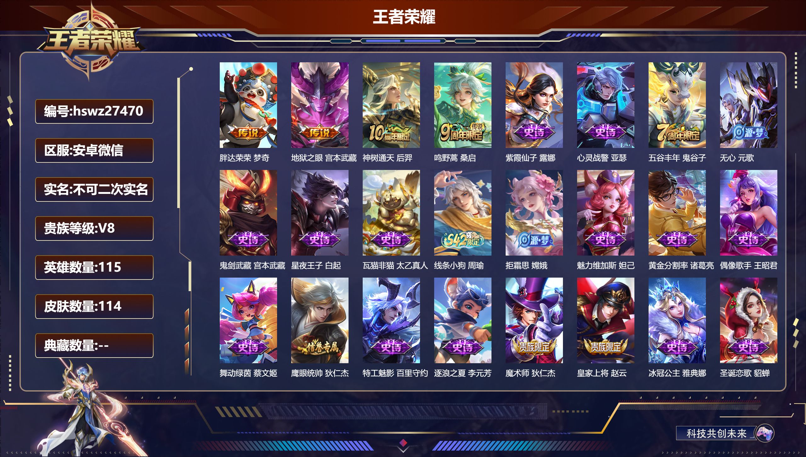 安卓微信/最强王者/114皮肤/115英雄/0典藏/0珍品无双/0无双/0珍品传