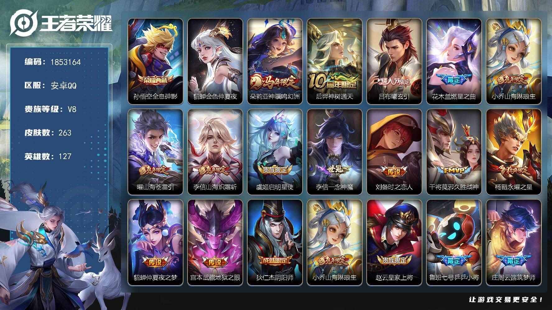 【1无双16传说278皮肤1水晶1星元 秒换绑不用等】安卓QQ-128英雄-27