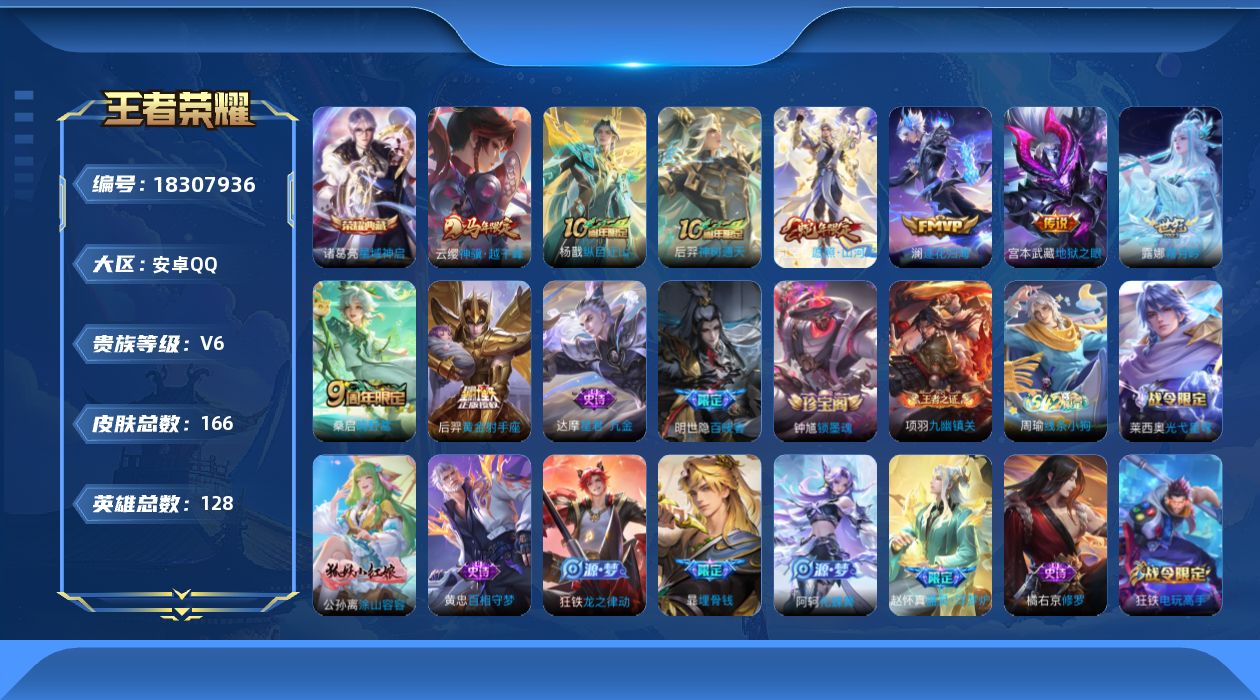 V6-至尊星耀V段位-128英雄-166皮肤-1典藏