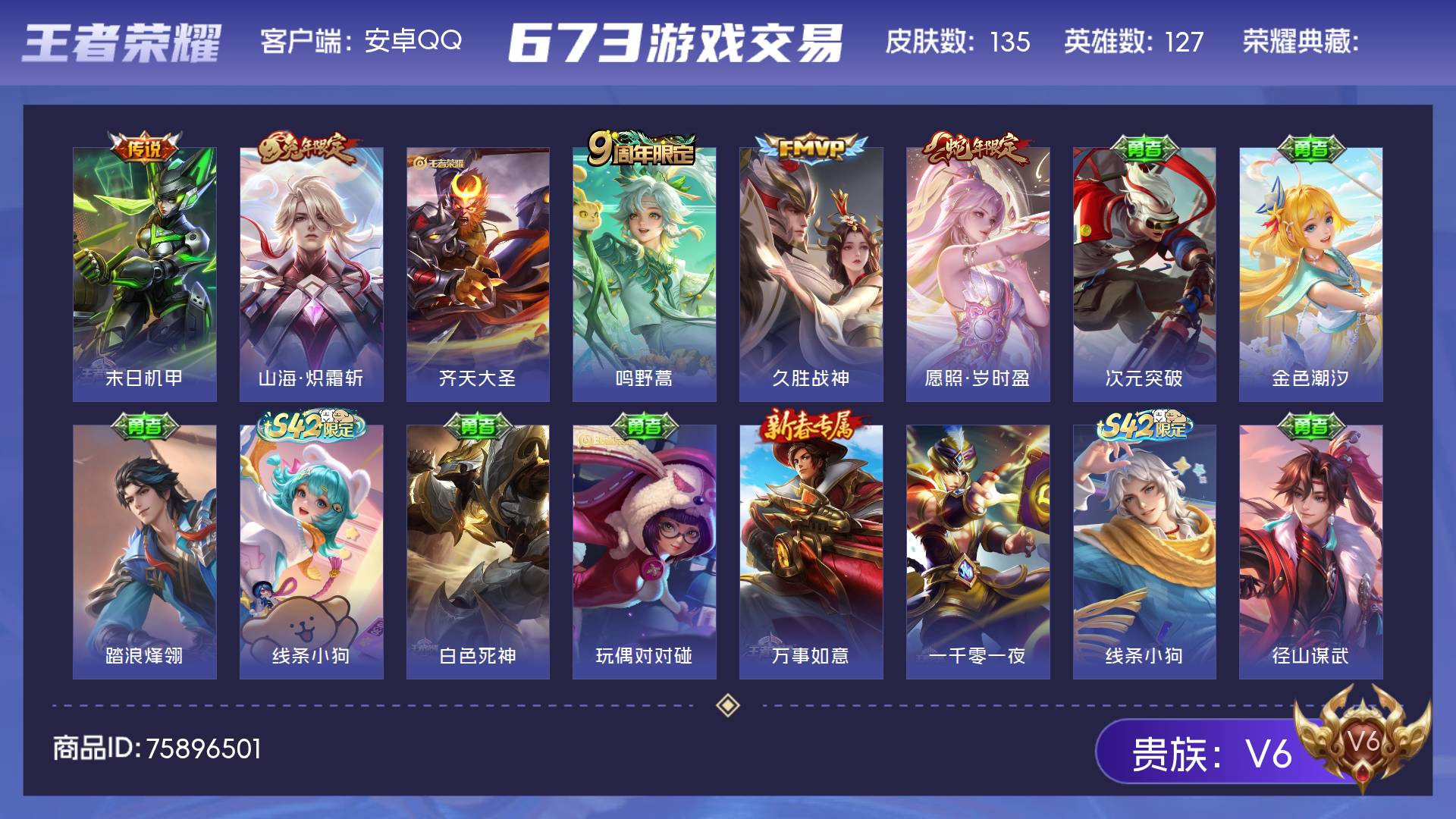 V6 皮肤135 英雄127 尊贵铂金 星传说1 传说6 其他皮肤136