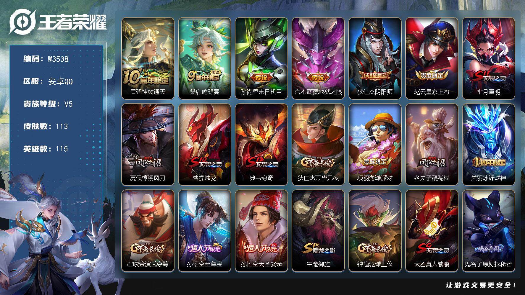 可二次-贵5-115英雄-113皮肤-4传说-39限定-2个性按键.贵族积分9337