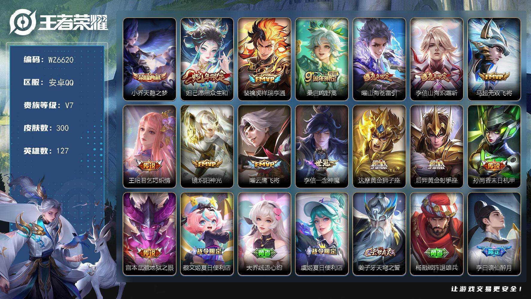 安卓Q-V7-最强王者段位-127英雄-300皮肤-1典藏皮肤-14传说-93