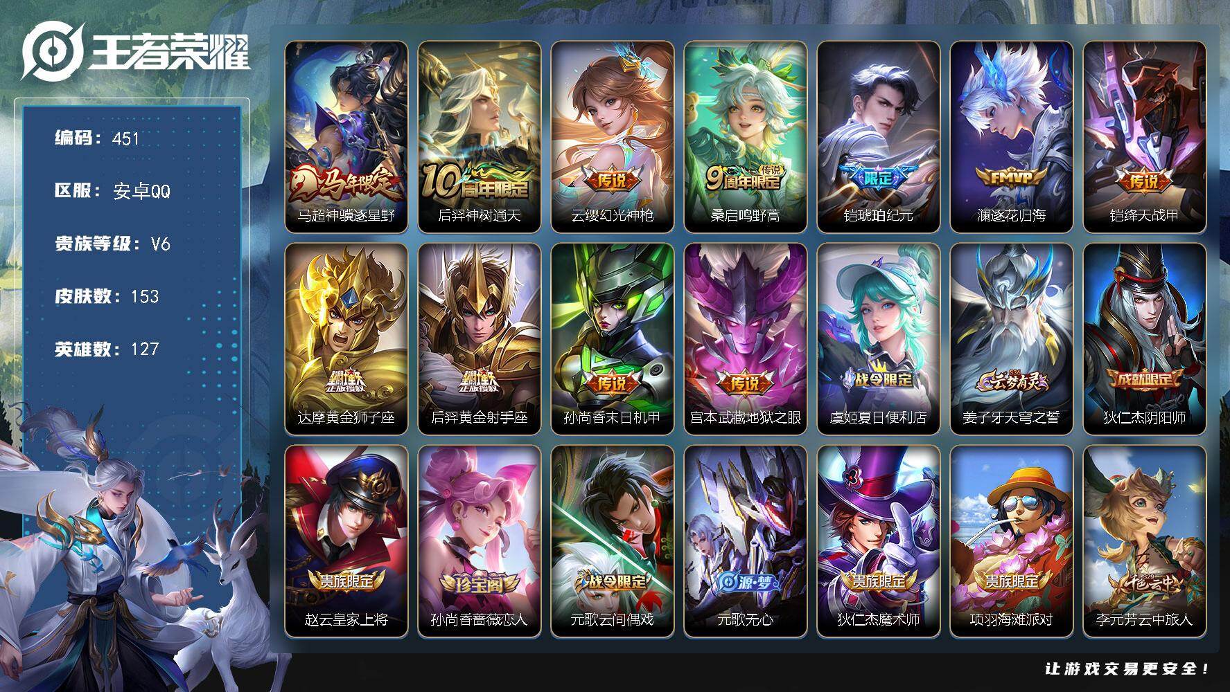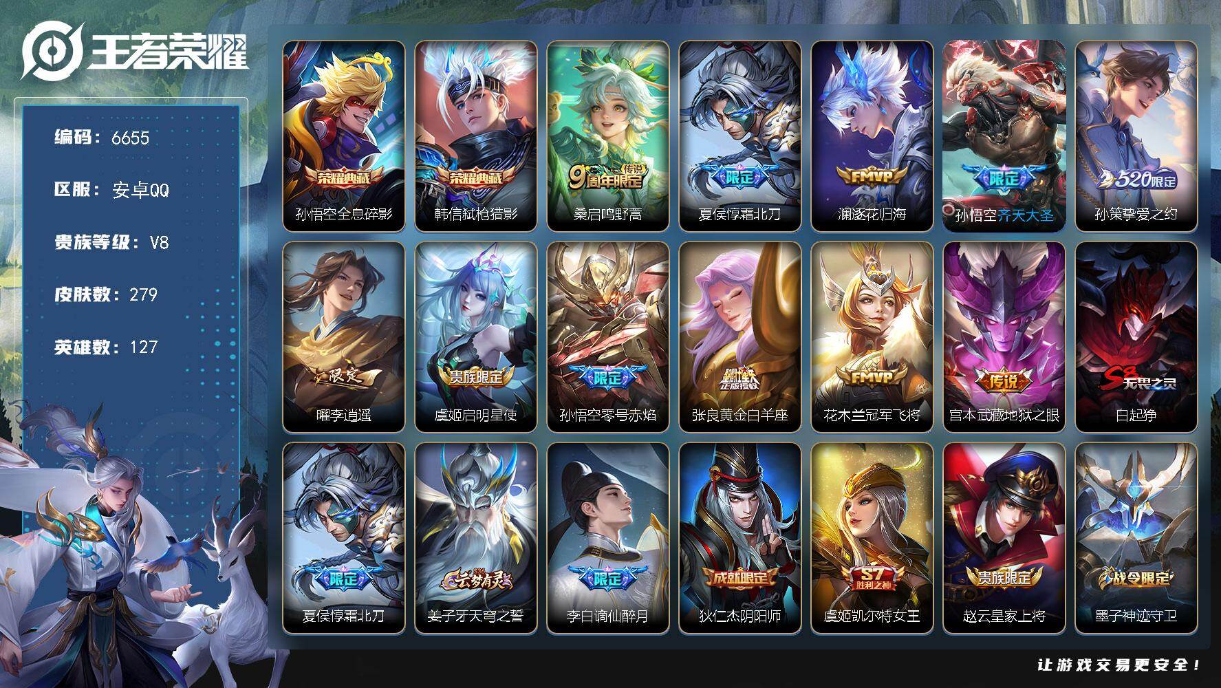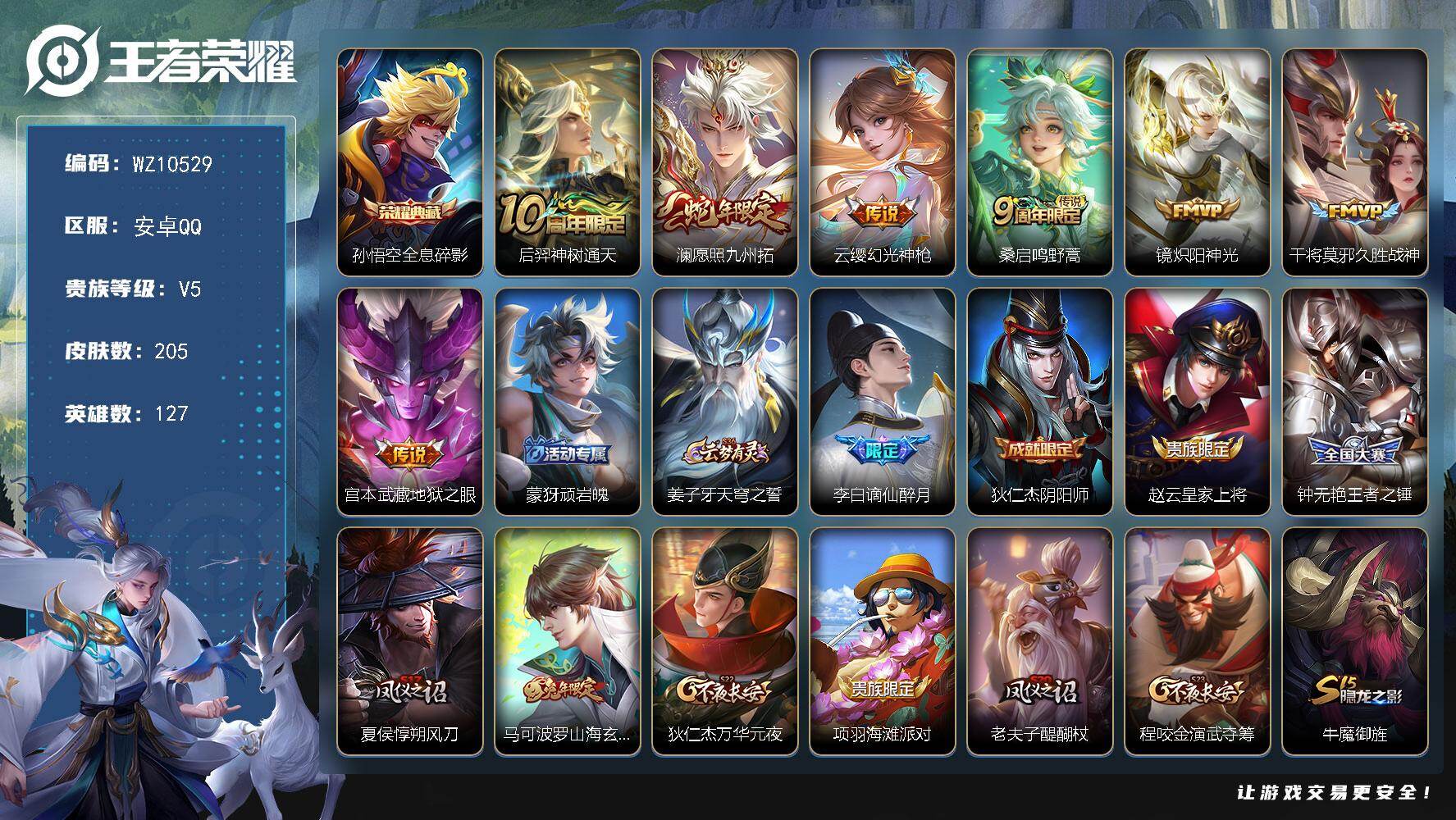 安卓Q-V5-最强王者段位-127英雄-205皮肤-1典藏皮肤-7传说-44史