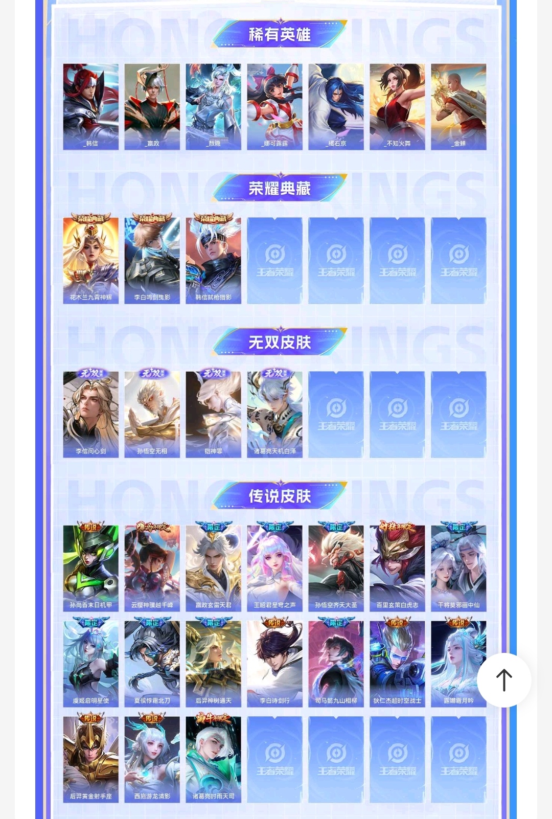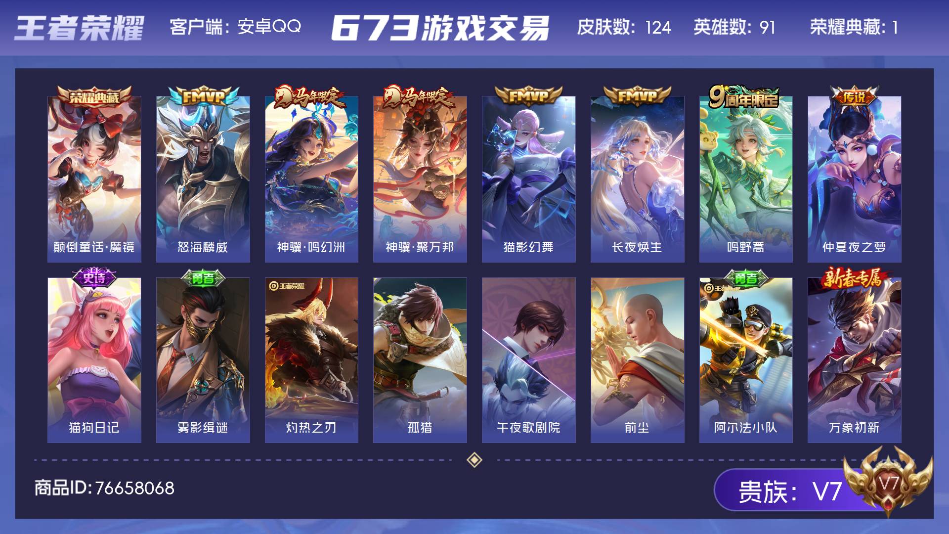 V7 皮肤124 英雄91 无双王者 荣耀典藏1 传说7