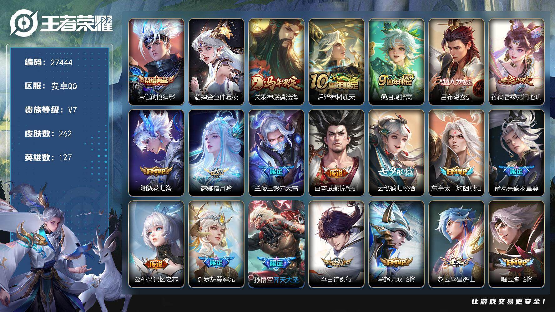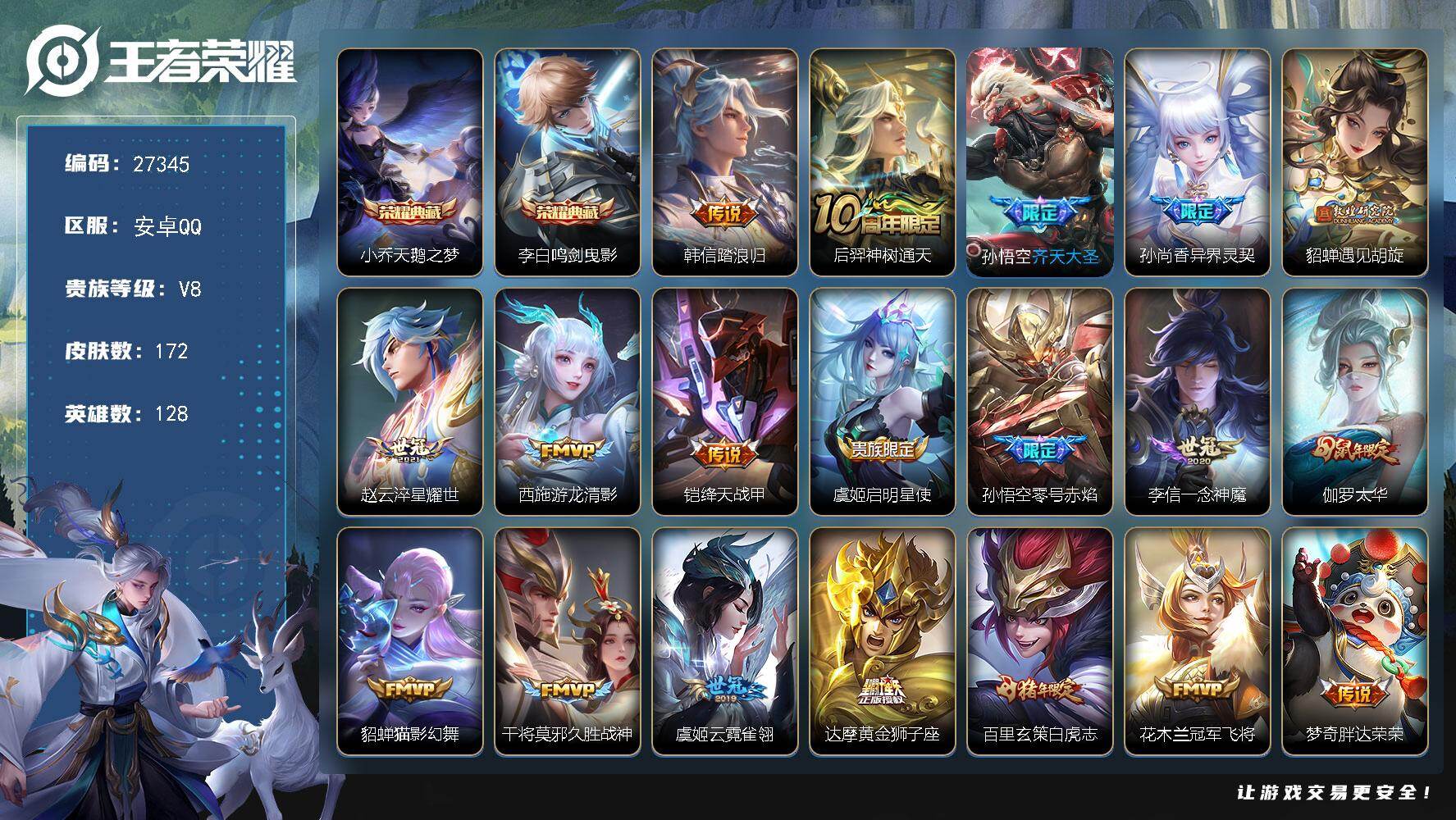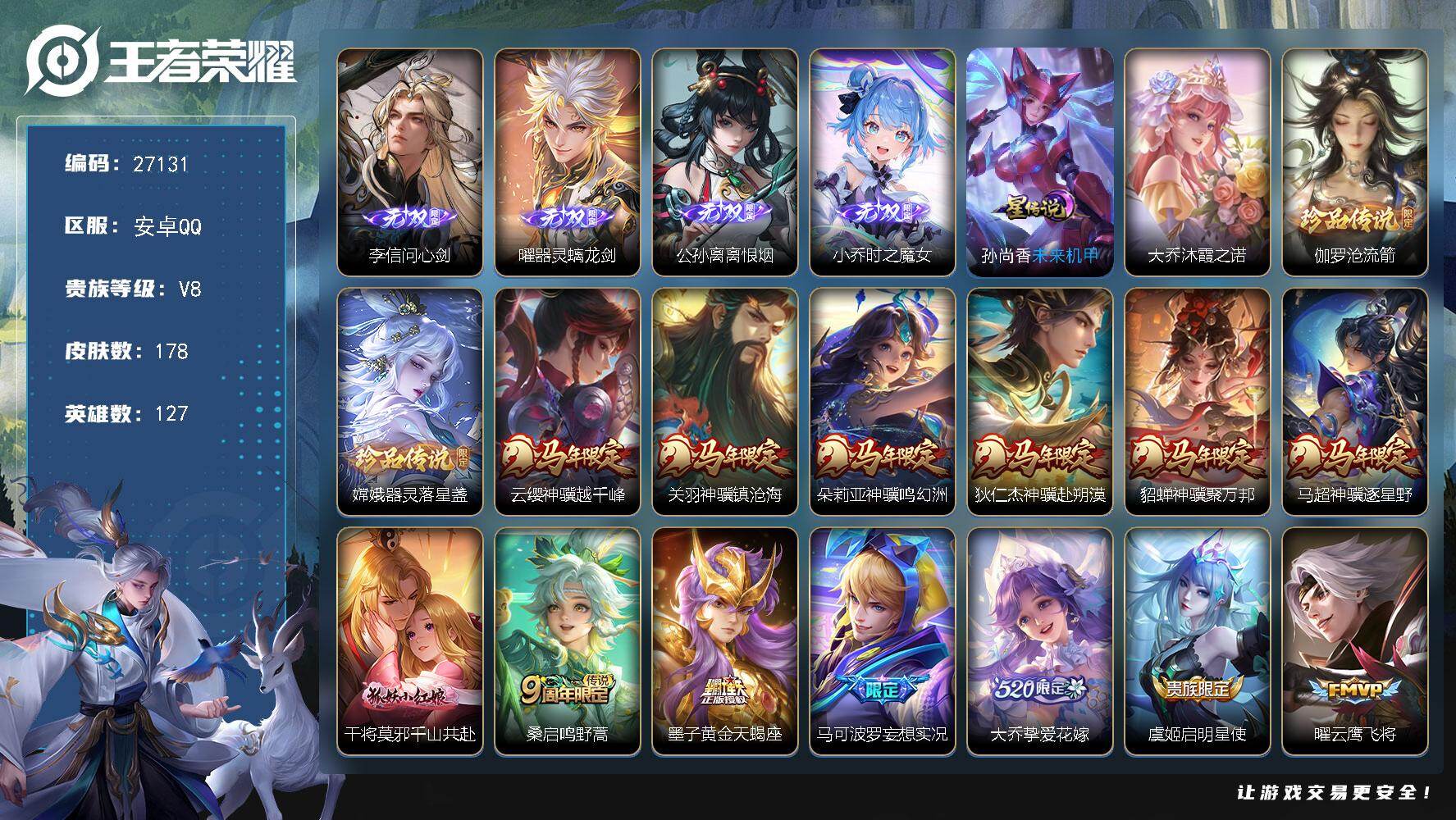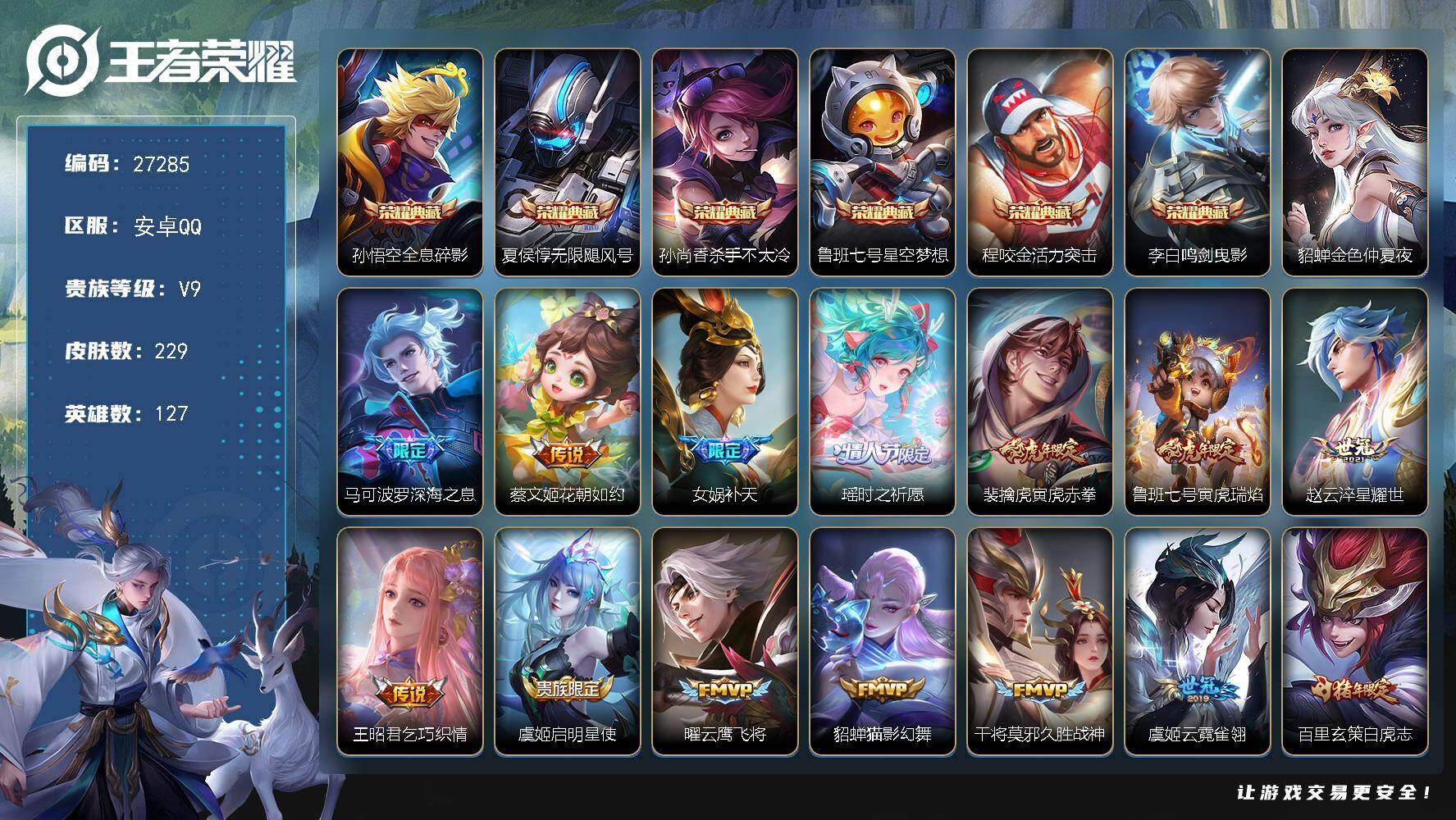 V9-最强王者段位-127英雄-360皮肤-2典藏皮肤-1无双-1珍品传说-29传说-108史诗