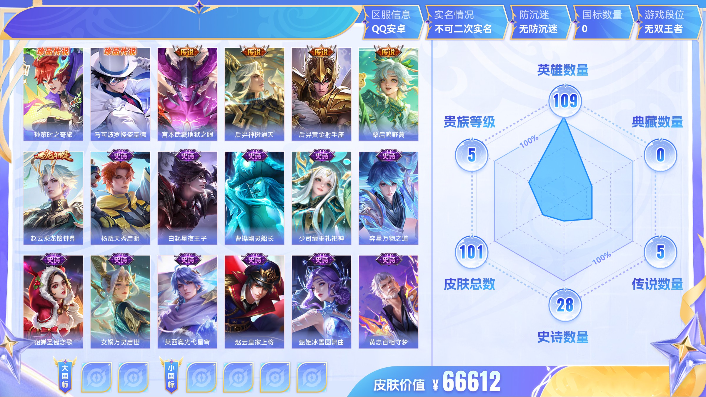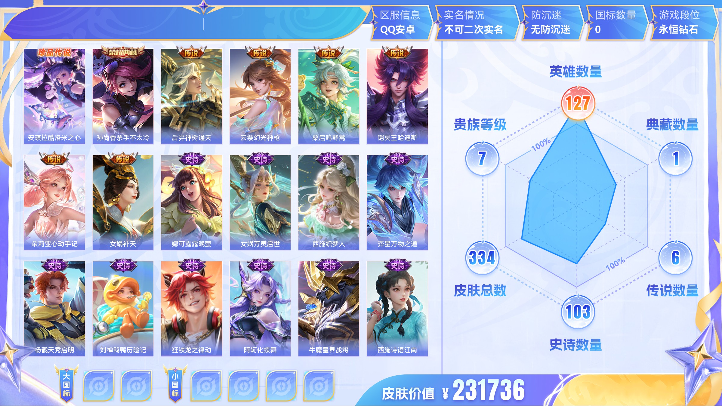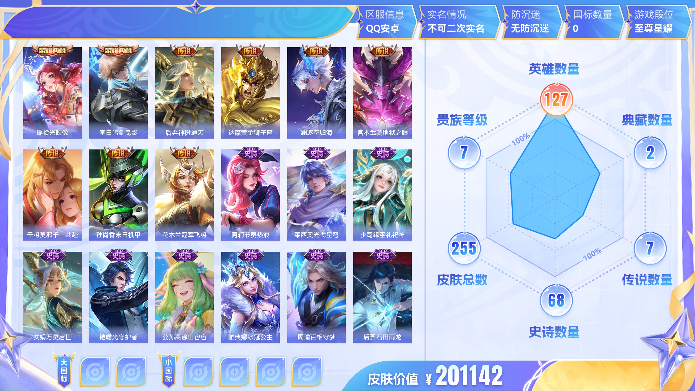 传说7 史诗22 限定33 英雄123 皮肤112