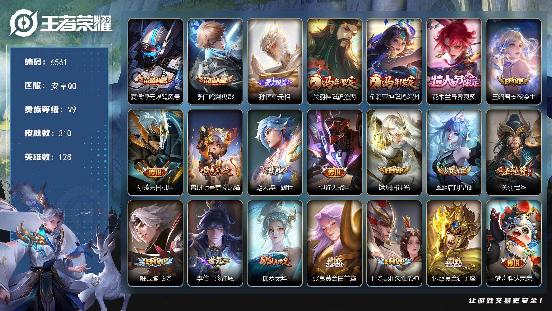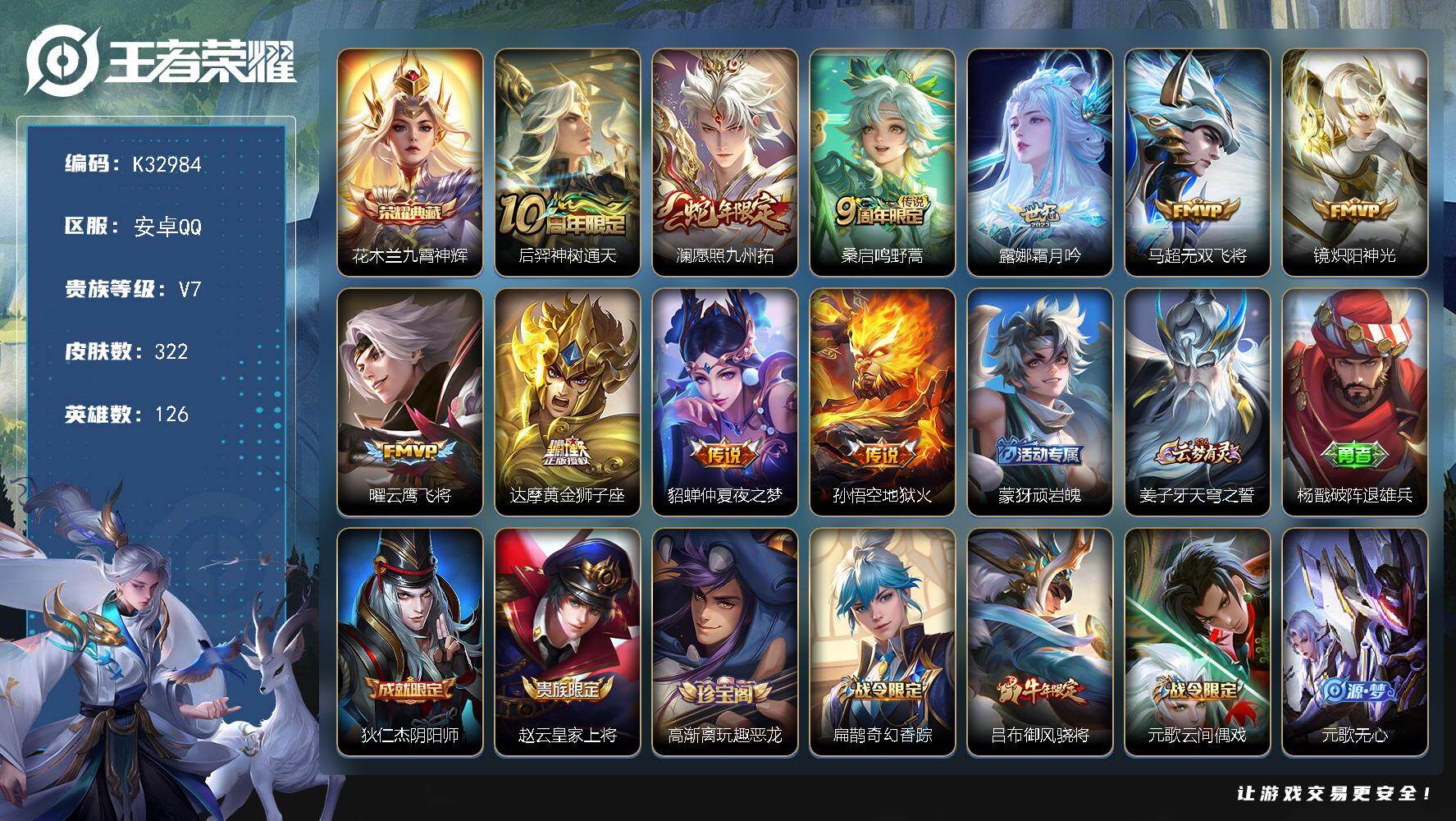 wj【精品射手号】安卓Q-V6-最强王者段位-126英雄-287皮肤-1典藏皮