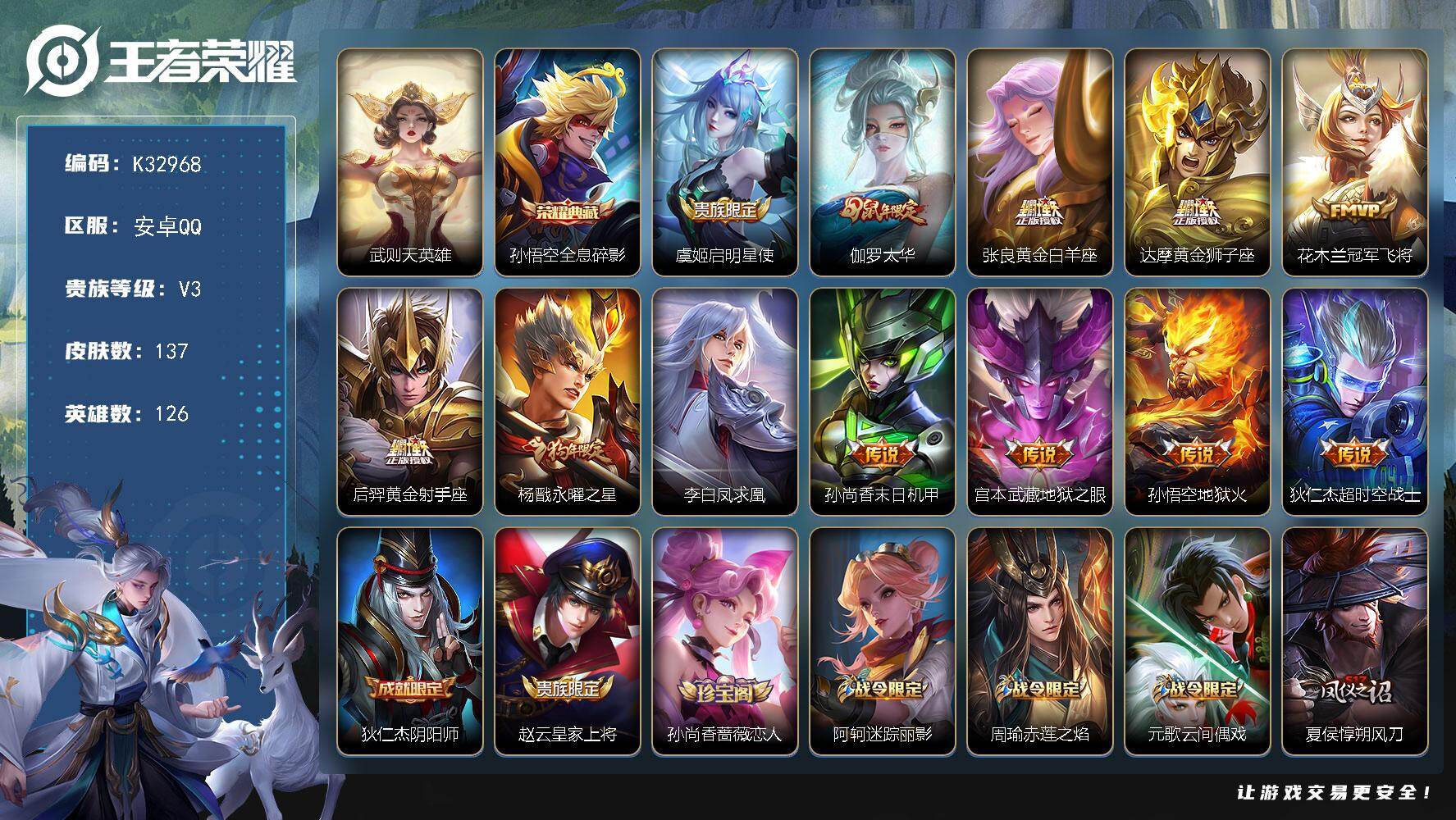 【16776574】安卓Q-V0-尊贵铂金I段位-125英雄-212皮肤-3典