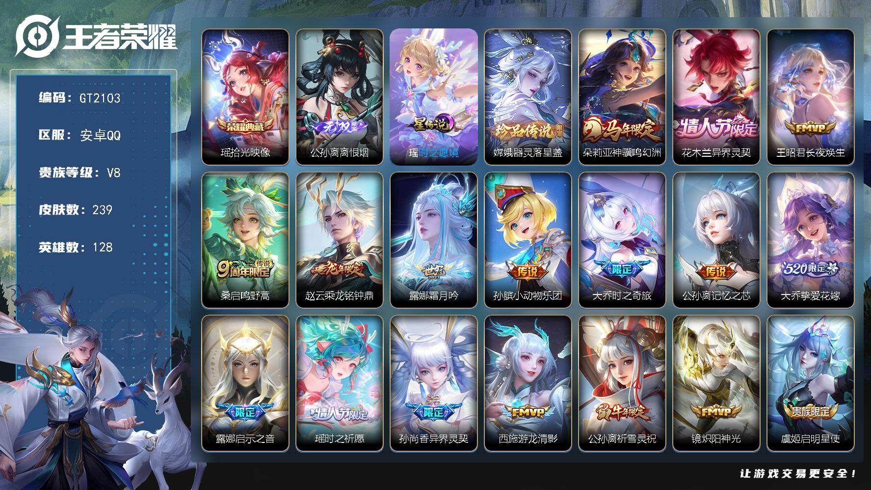 安卓Q-V9-至尊星耀I段位-129英雄-425皮肤-5典藏皮肤-1珍品传说-