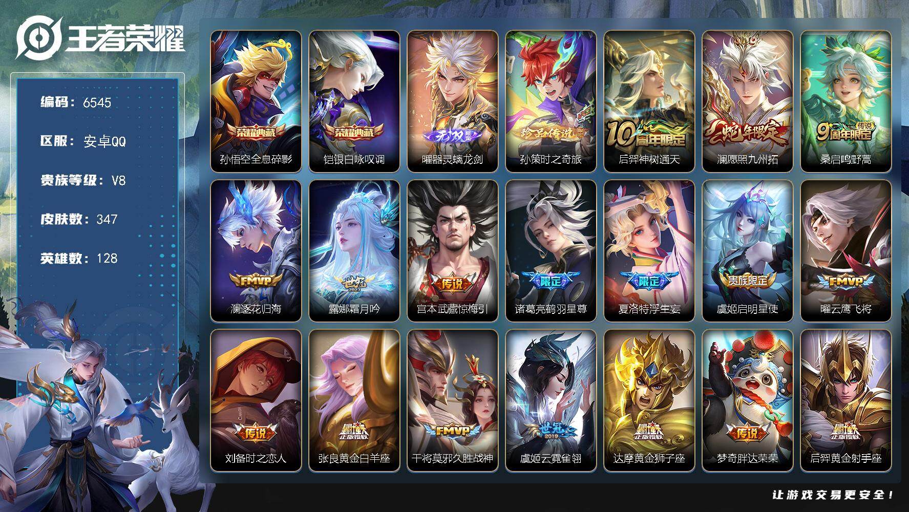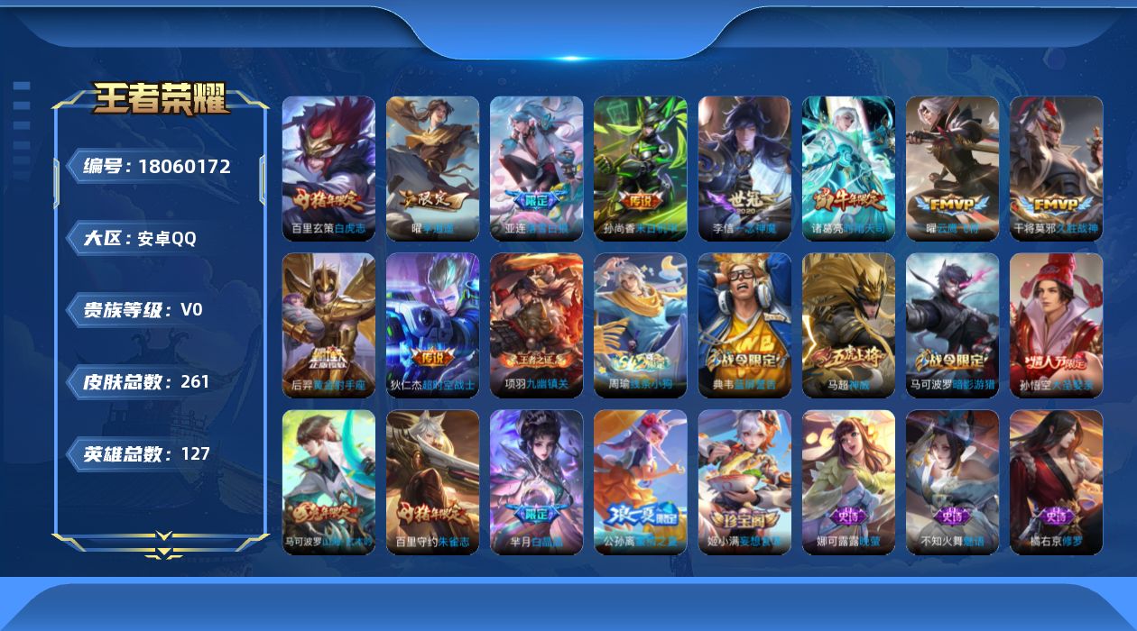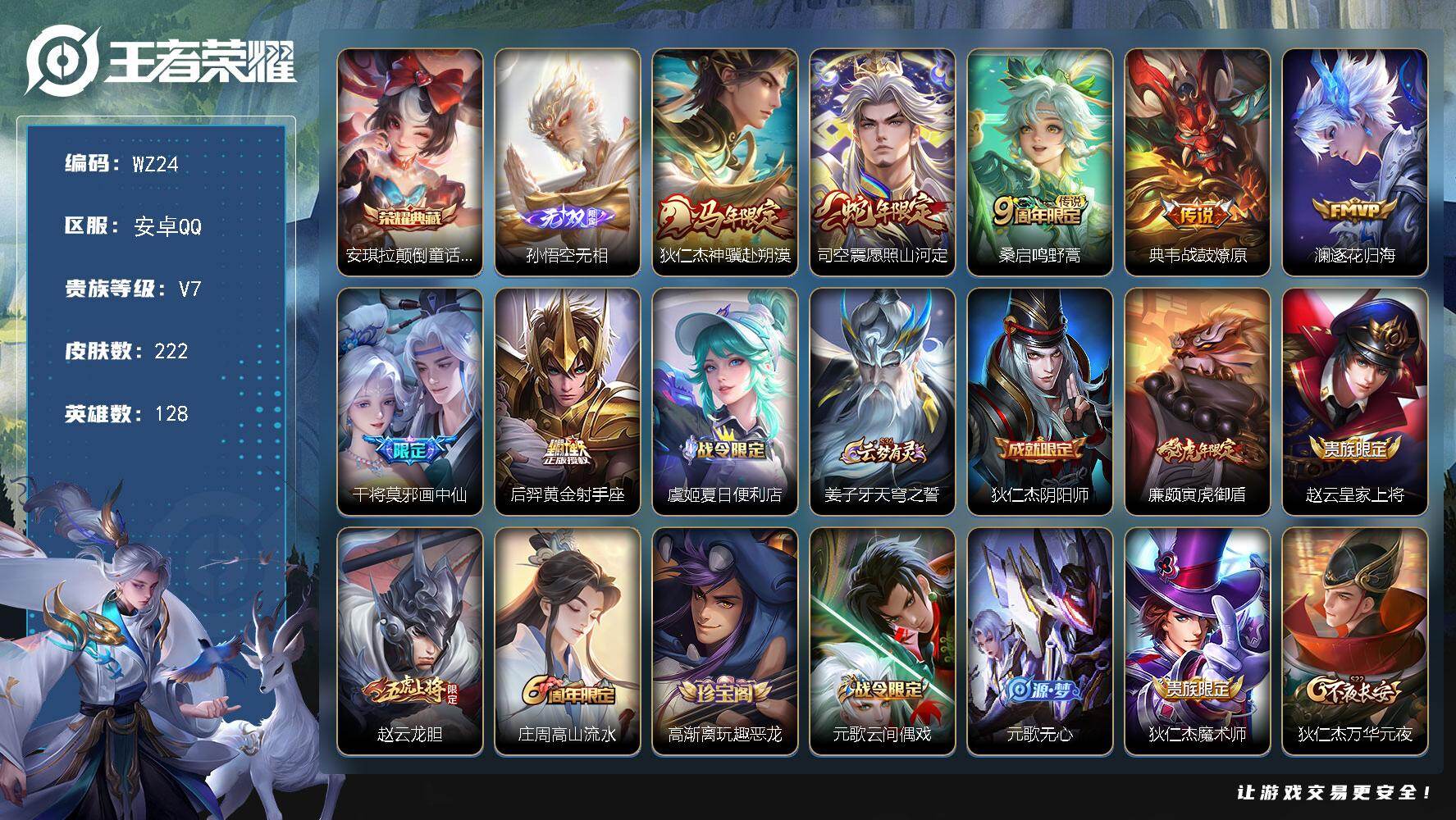 贵族7/皮肤258/传说7/史诗80/英雄126/空空儿全皮/