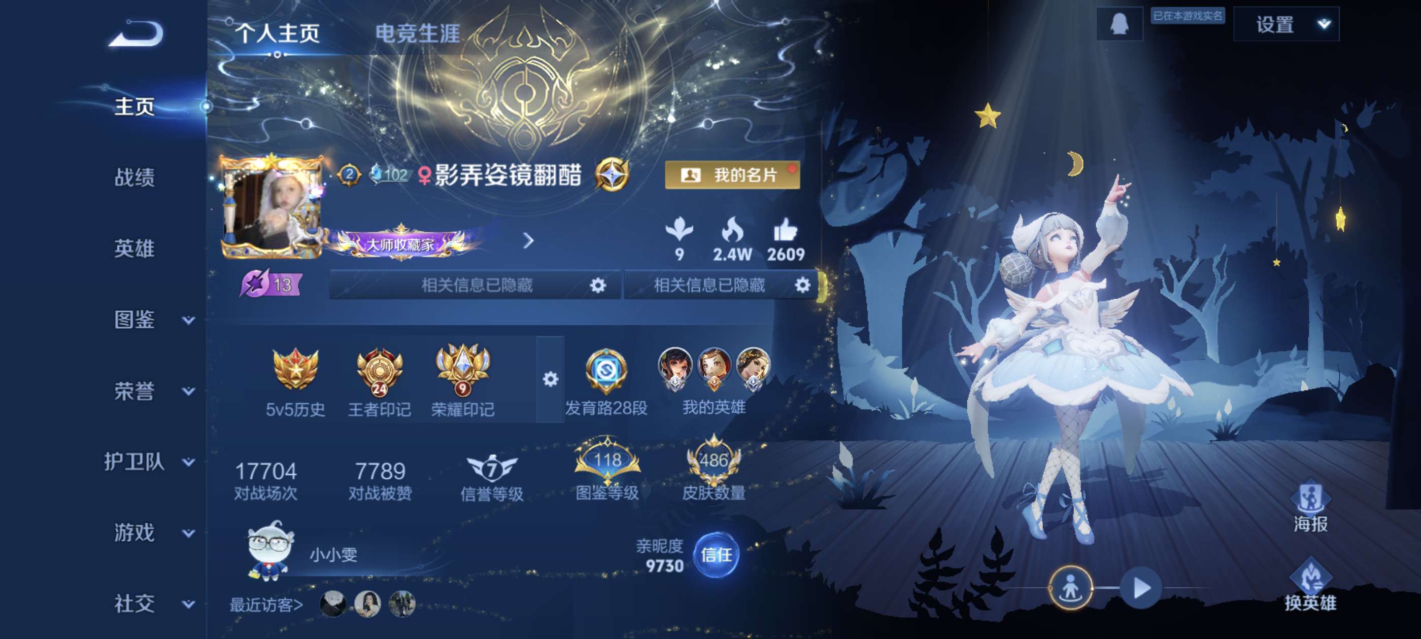 贵族8/皮肤285/典藏2/传说14/史诗83/英雄128/