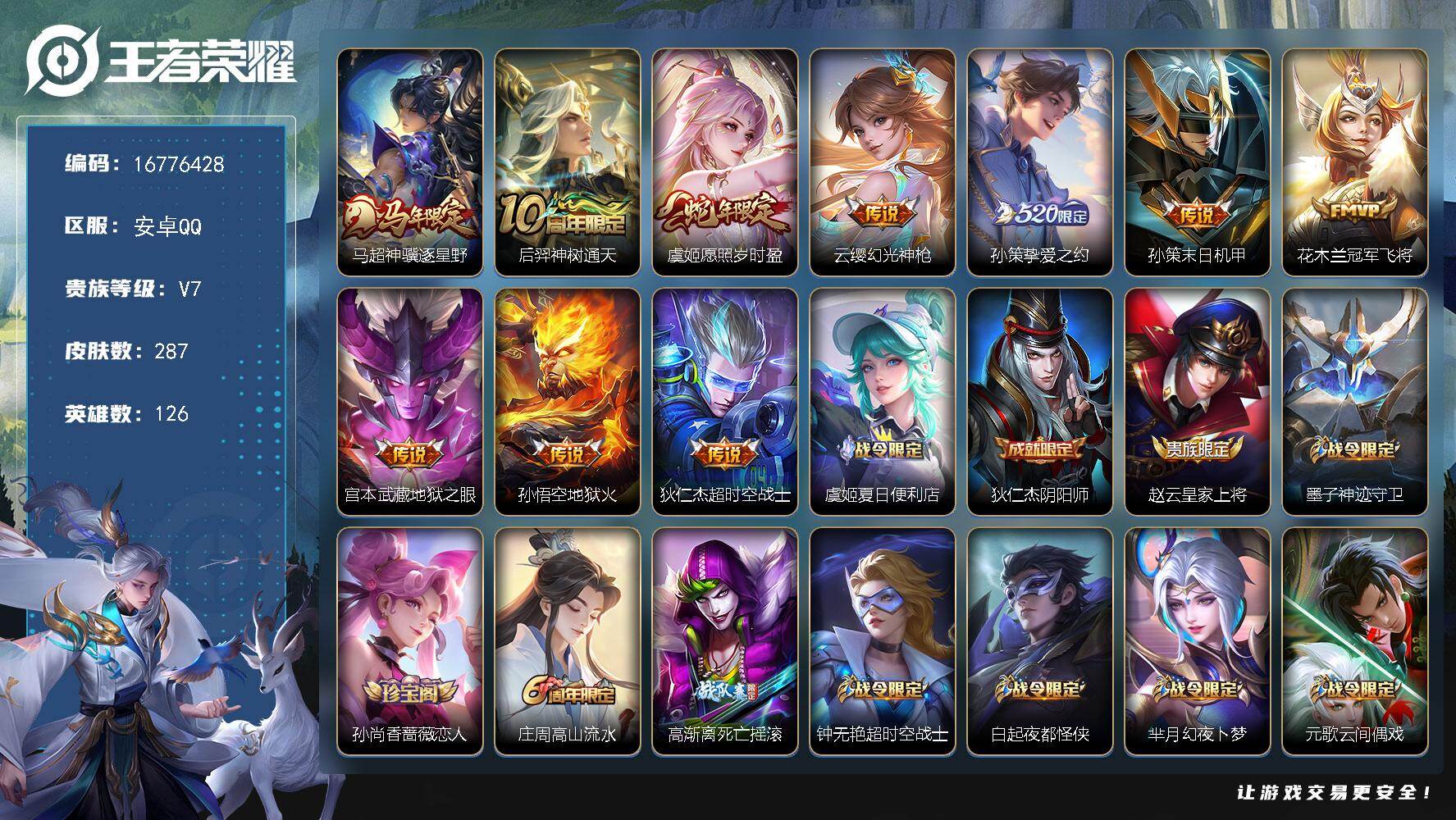 【16776428】安卓Q-V7-永恒钻石I段位-126英雄-287皮肤-10