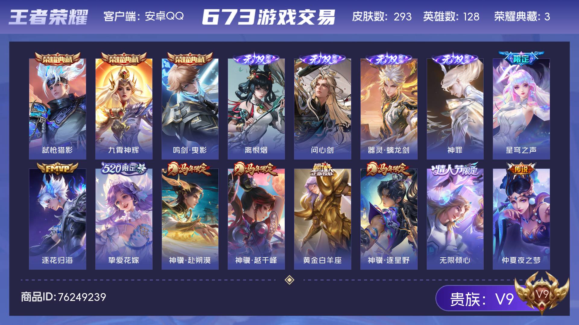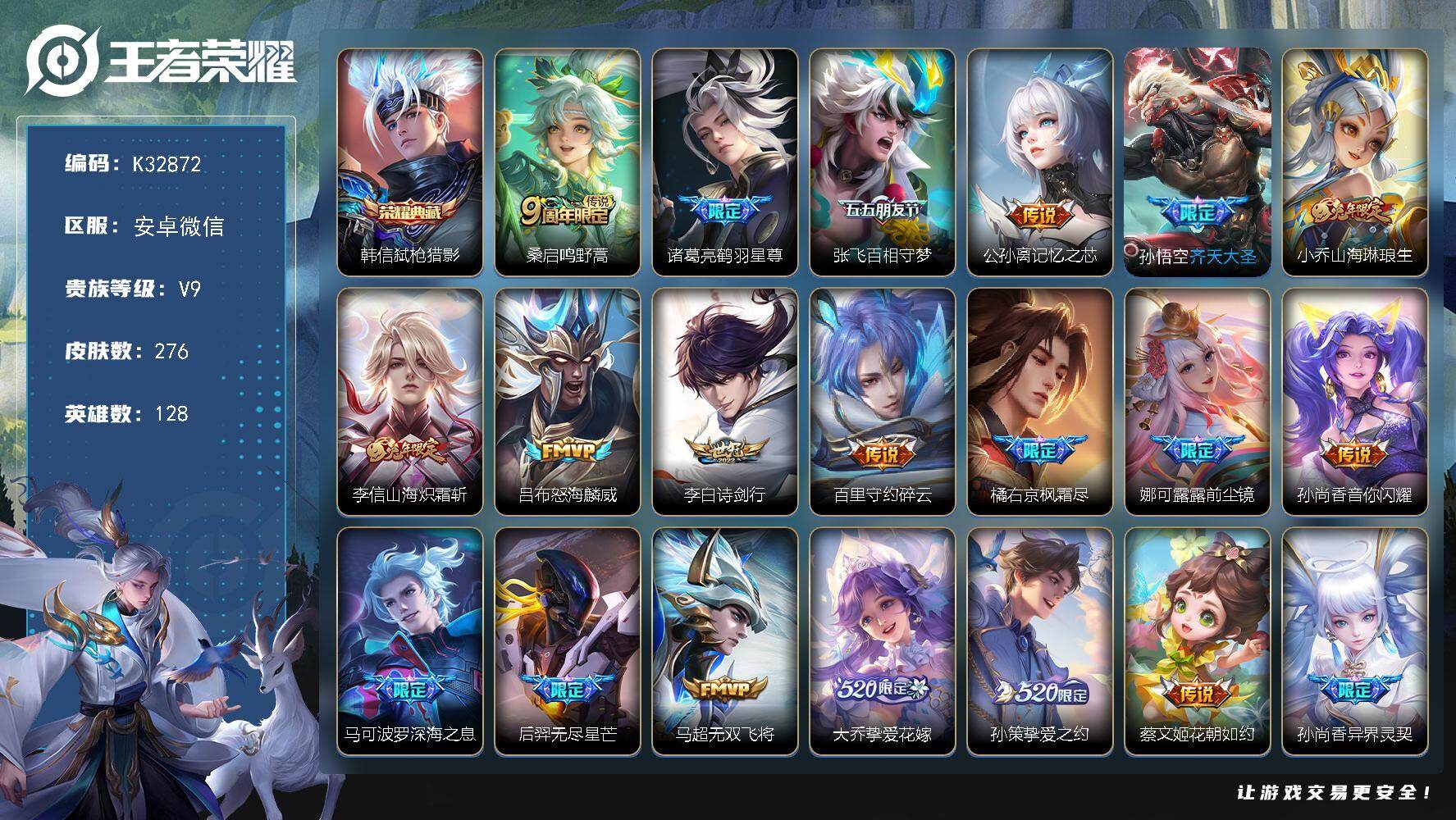 V9-最强王者段位-128英雄-276皮肤-1典藏皮肤-37传说