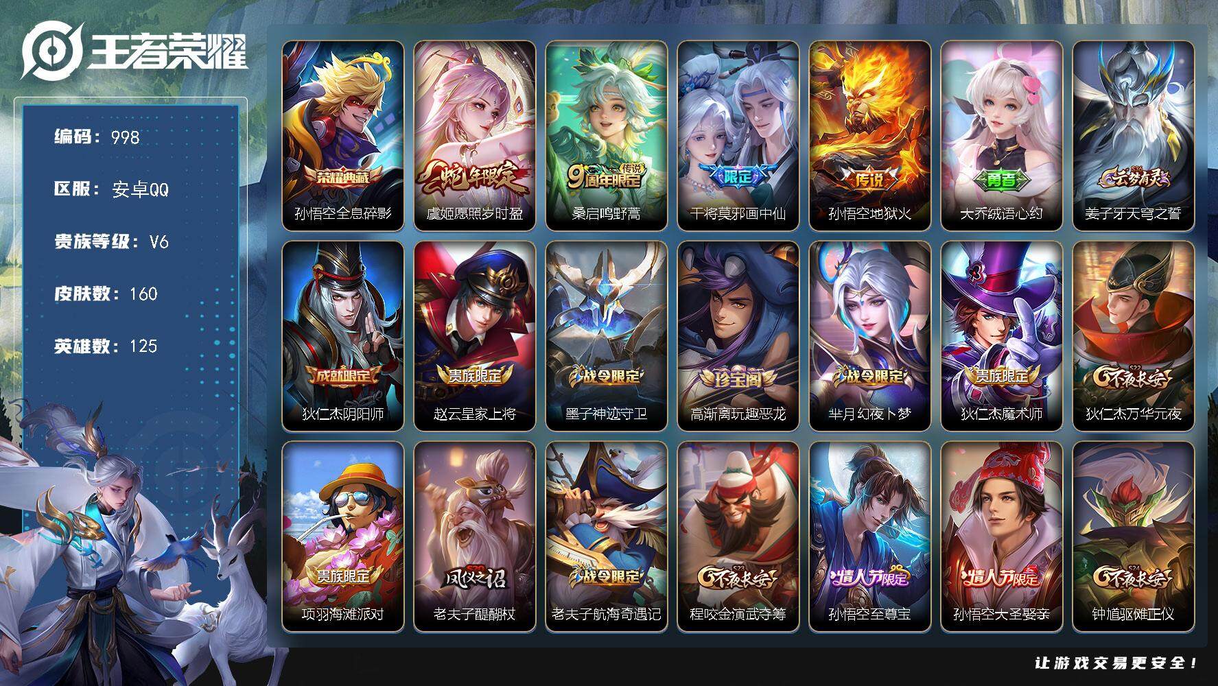 安卓Q-V7-最强王者段位-126英雄-170皮肤-5传说-34史诗【传说皮