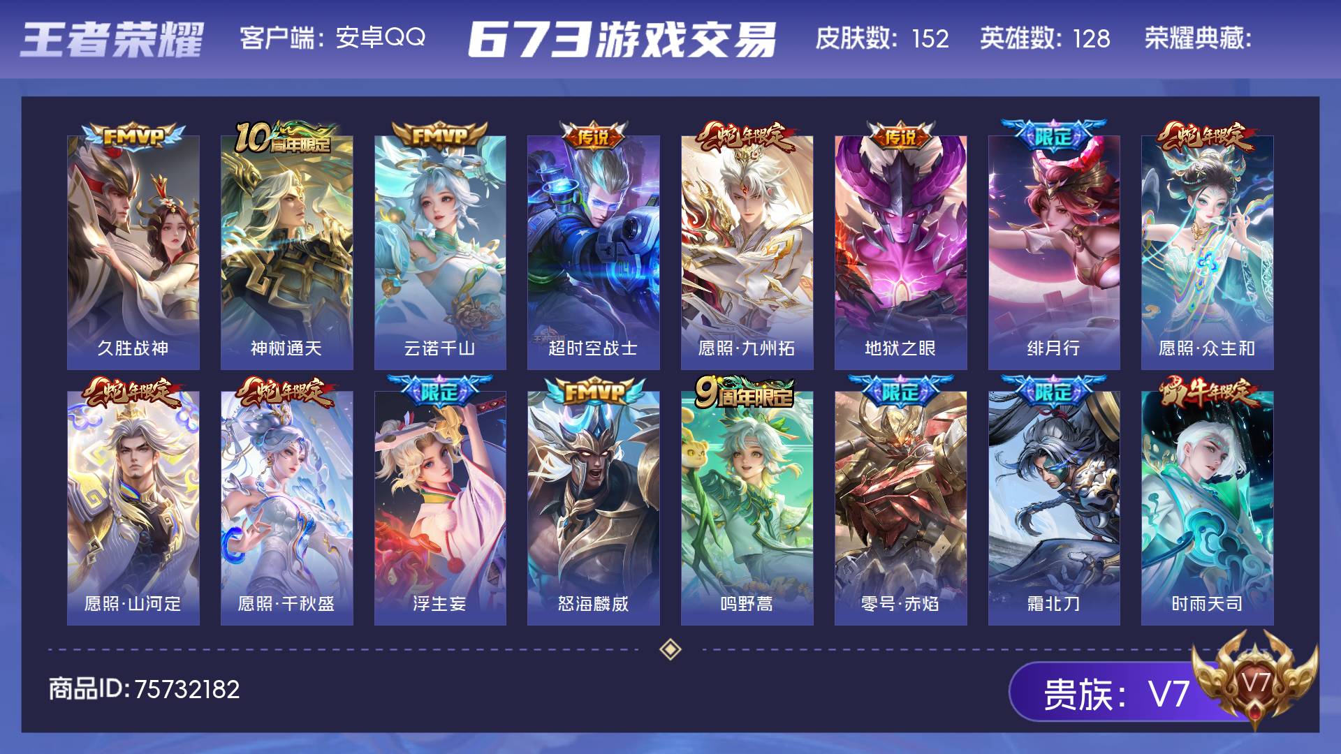 V7 皮肤152 英雄128 非凡王者 星传说1 传说16 其他皮肤142