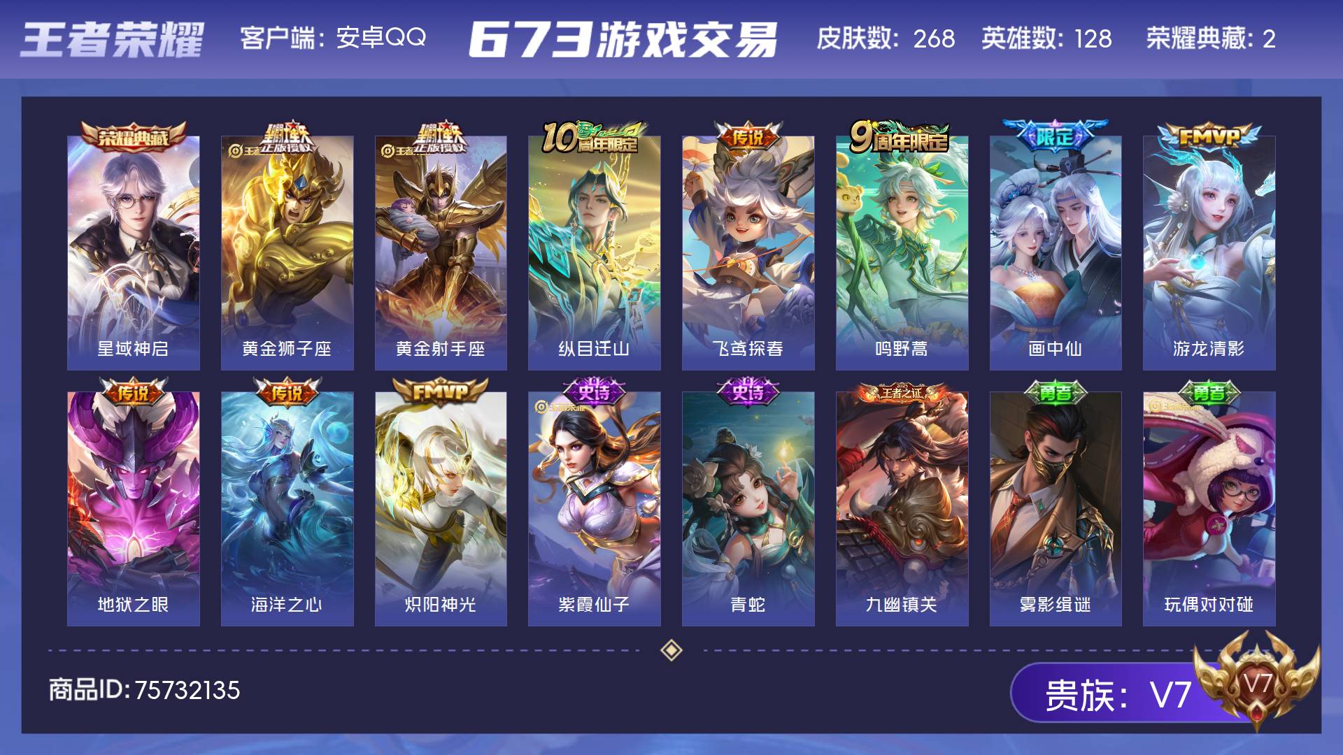 V7 皮肤268 英雄128 非凡王者 荣耀典藏2 传说10 其他皮肤263