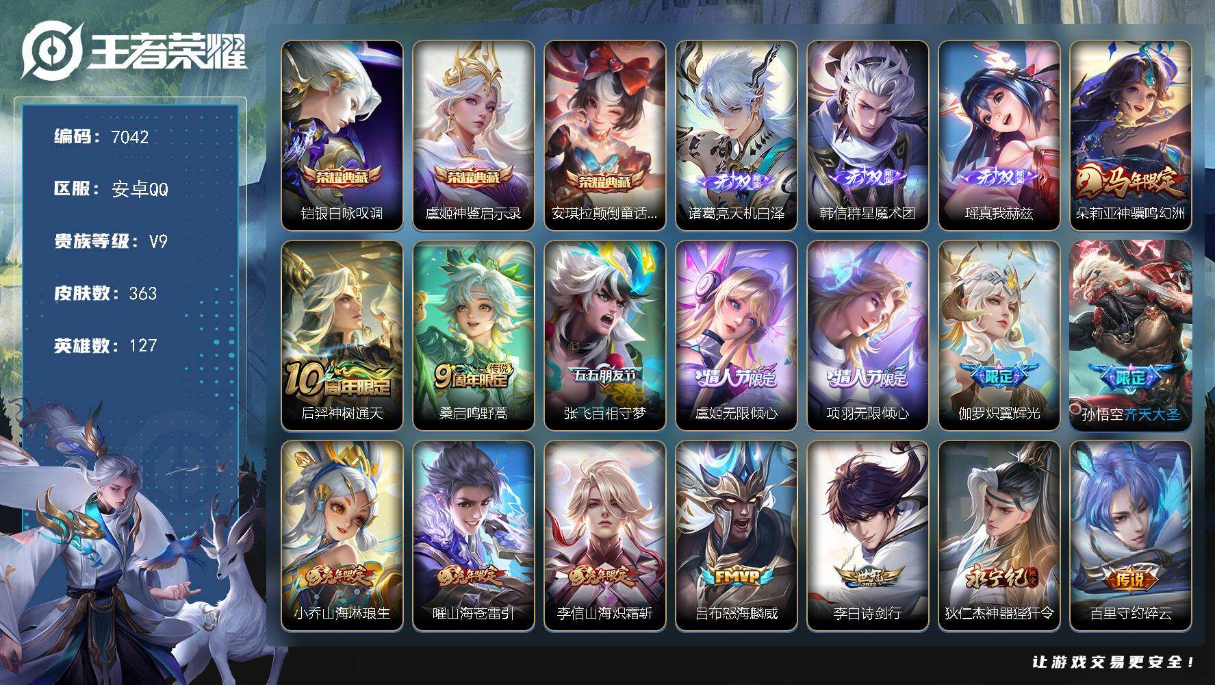 贵族9-贵族积分175602-363皮3典藏35传说3无双-4个英雄全皮 不羡