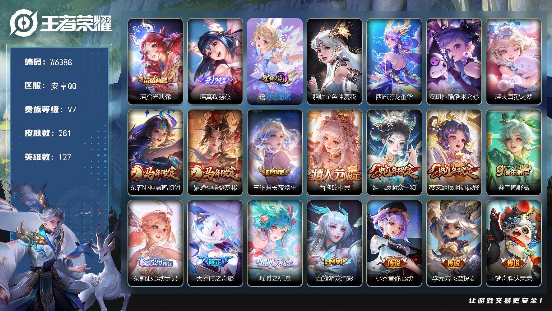 安卓Q-V7-最强王者段位-119英雄-152皮肤-1典藏皮肤-1无双-1珍品