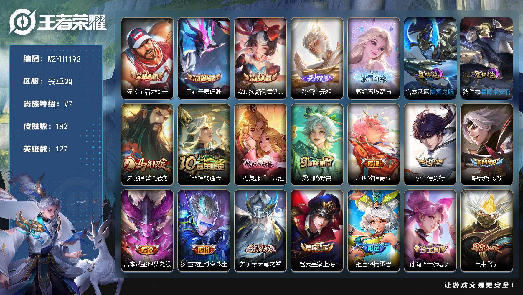 []V7 5传说 127英雄 150皮肤 可二次 可修改实名 男号 【英雄全皮