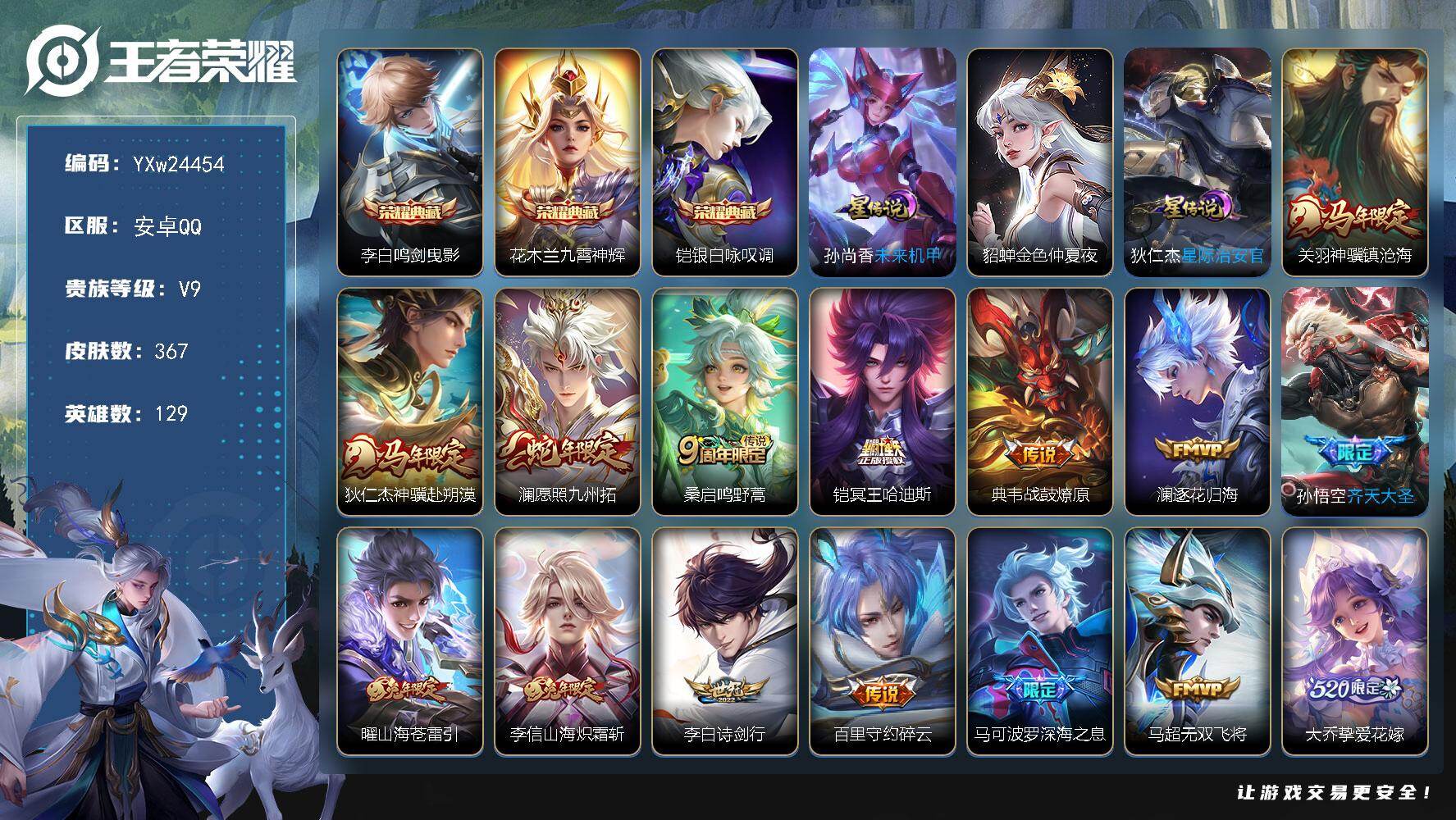 可换绑 【精品号·典藏孙悟空·珍品马可·蛇年妲己·龙年孙策·鹤羽星尊·孙策520