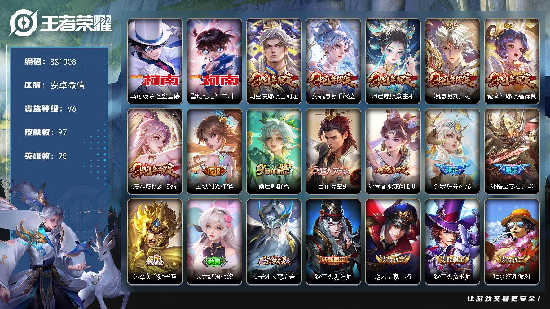 满蛇年!安卓WX-V0-永恒钻石III段位-95英雄-97皮肤-2珍品传说-1
