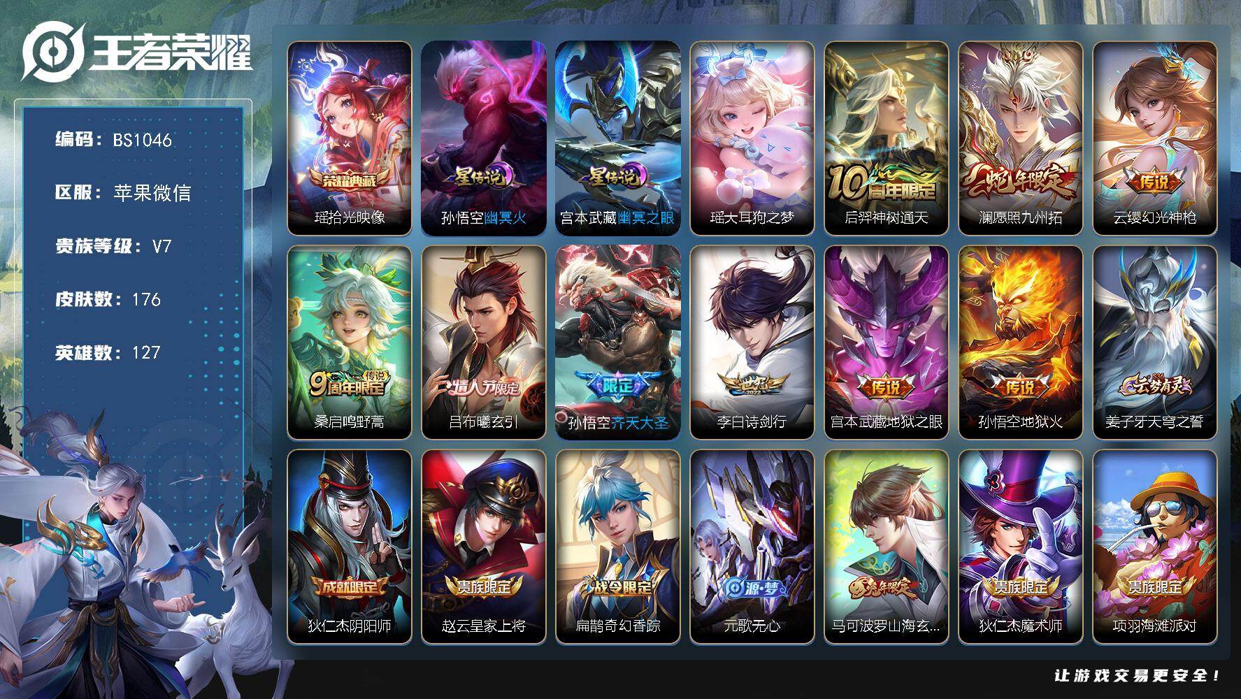 苹果WX-V7-尊贵铂金III段位-127英雄-176皮肤-1典藏皮肤-1珍品
