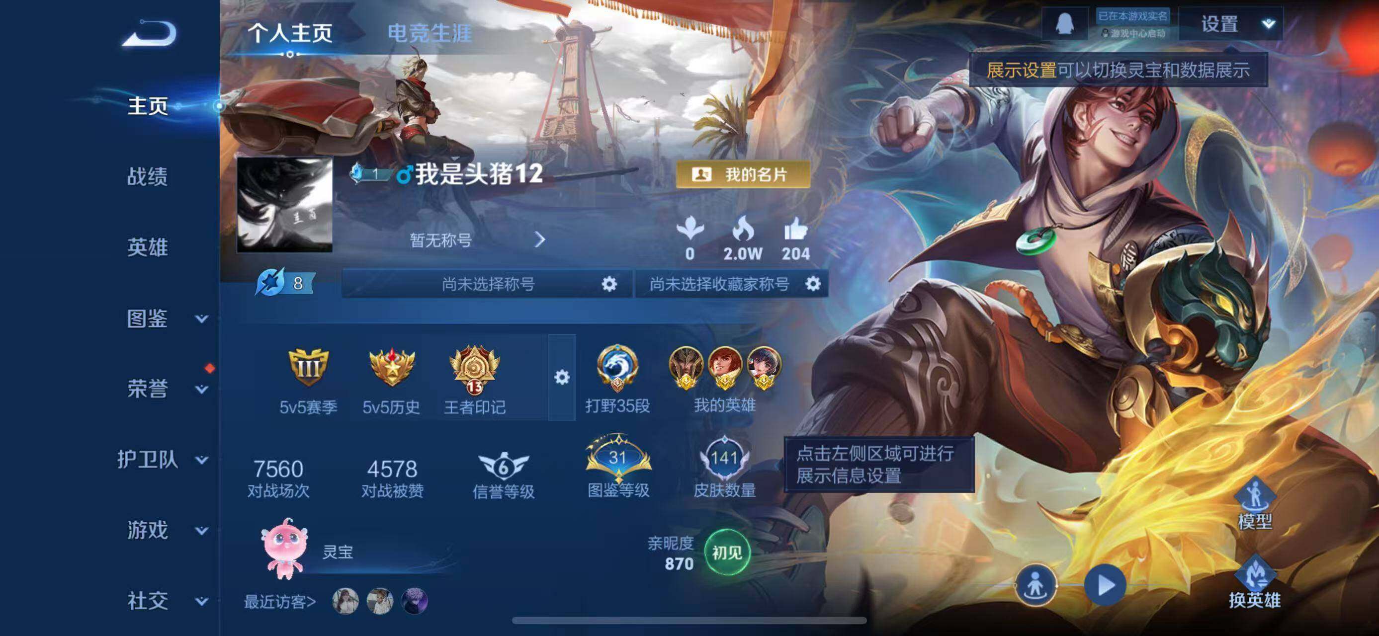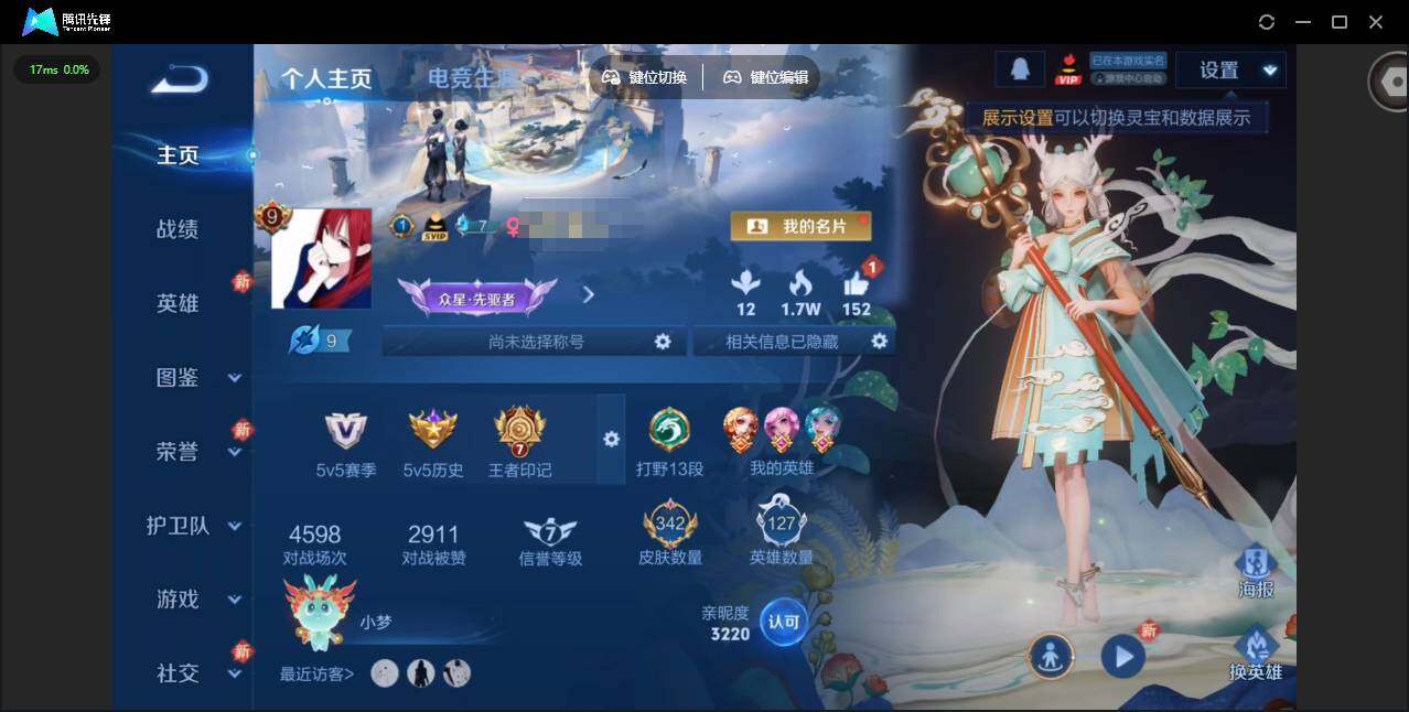 实名: 可修改 贵族等级: V3 英雄数: 51 皮肤数: 36 限定皮: 愿
