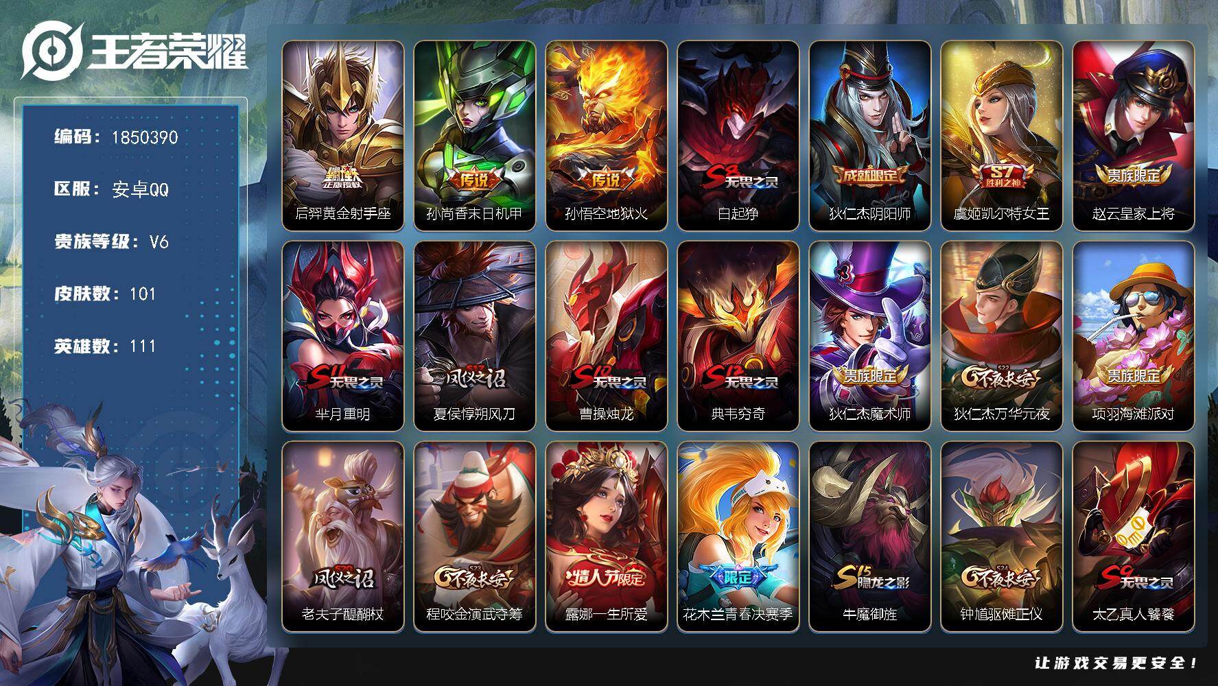 【W4716】安卓QQ-有二次-贵6-112英雄-100皮肤-13传说-1星元