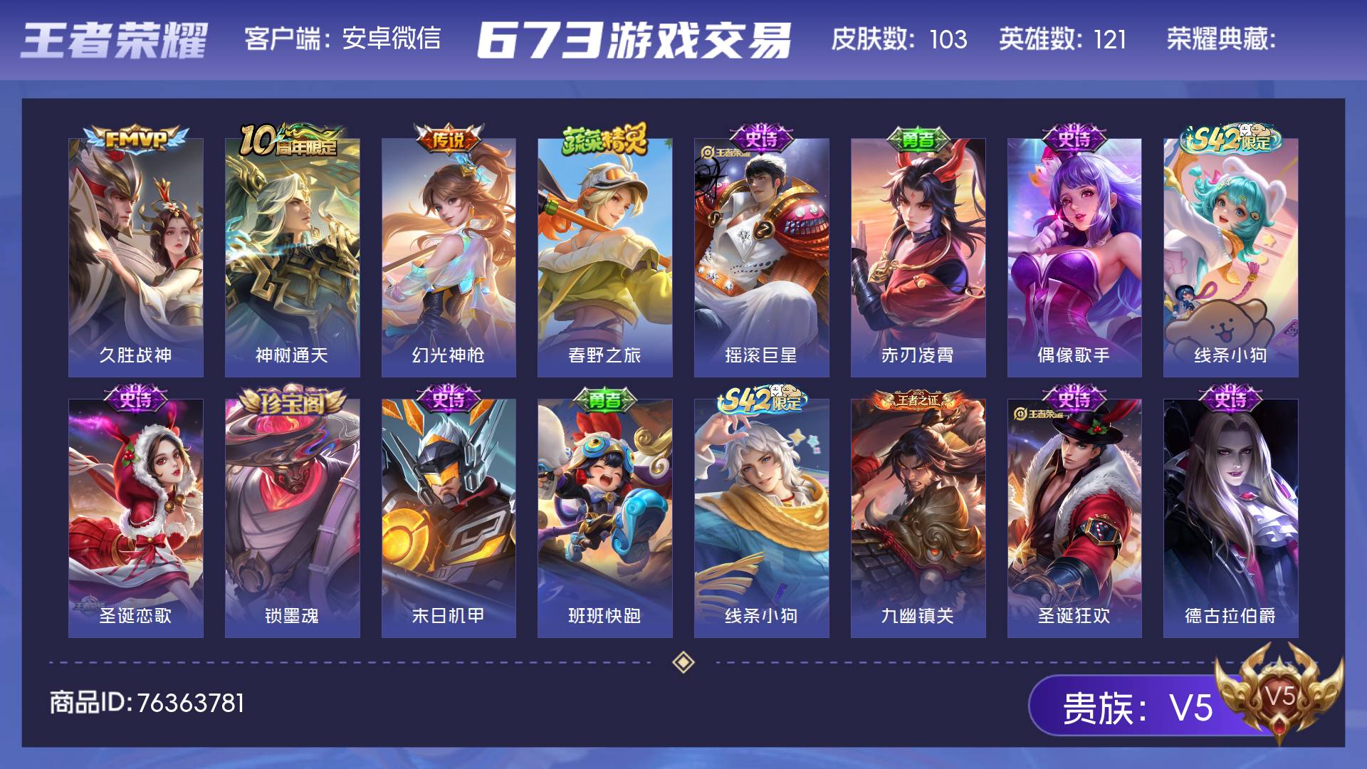 V5 皮肤103 英雄121 永恒钻石 传说3